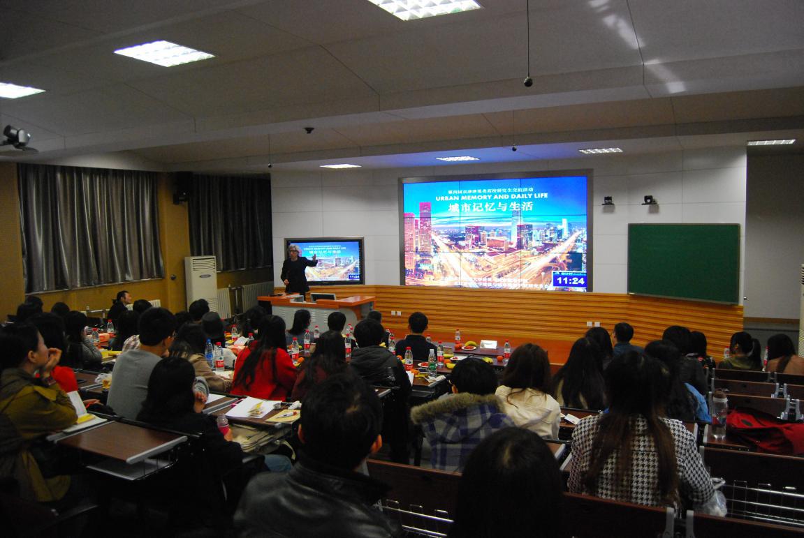 下午主要是各校代表的讲演及同学们的自由讨论。13:30同学们和代表们陆续入场,13:45开始讲演,首先是来自努努影视 努努影视 医疗建筑方向的孙轶男同学发言,她的主题是断裂的城市记忆。主要以家乡吉林省白山市为例,解说城市的结构和记忆,指出大多数居民乐于搬进更好生活条件的住房,却发现曾经的美好找不到了,这是因为什么出了问题?并就此展开讨论。之后是来自清华大学努努影视 城乡规划学历史文化遗产保护方向博士研究生边兰春的讲演,他的主题是北京旧城历史街区居住改善中的社会空间重构。主要结合他曾参与的北京市西城区“十二.五”期间历史文化保护区保护与发展规划北京阜景文化旅游街发展规划对北京历史街区院落的改造提出不同可能性,同时例举了他曾调查的雨儿胡同29号等14个典型院落。第三个发言的是来自北京林业大学风景园林学风景园林规划与设计方向的高原和何伟两位同学,他们的主题是雨水的记忆,主要介绍了他们正在研究的海绵城市,并以辽化市为例阐述了海绵城市的理论支持及可行性。第四个讲演的是来自北京大学人文地理学专业房地产、土地利用规划方向的研究生梁湉湉,她的主题是解构城市,主要以自己在日本旅行的经历为线索,阐释了城市文脉、独特性,强调人的主动性以及在建设规划时应该以人为本、注重使用者的看法。最后发言的是来自中央美术学院努努影视 博士研究生同时也是中央美术学院文化城市研究所成员的郭龙同学,他的主题是城市.记忆与生活,主要对记忆的各层面进行分析解说,并将此溶于城市生活中。在各代表发言结束后,各院校各专业的同学们展开了热烈的讨论,到17:00本次活动圆满结束,同学们在恋恋不舍中互相道别,相约下界京津建筑类高校研究生交流活动。