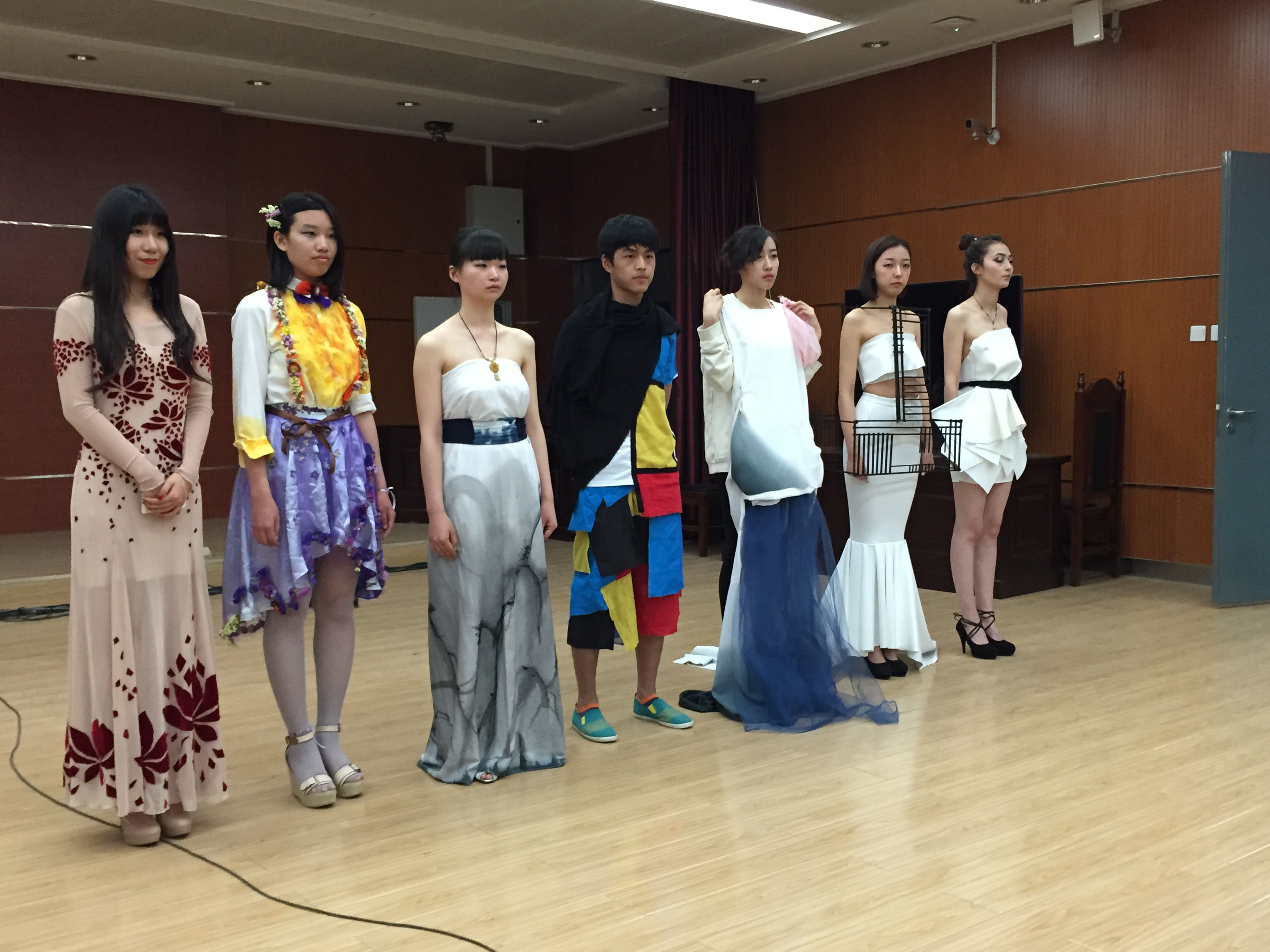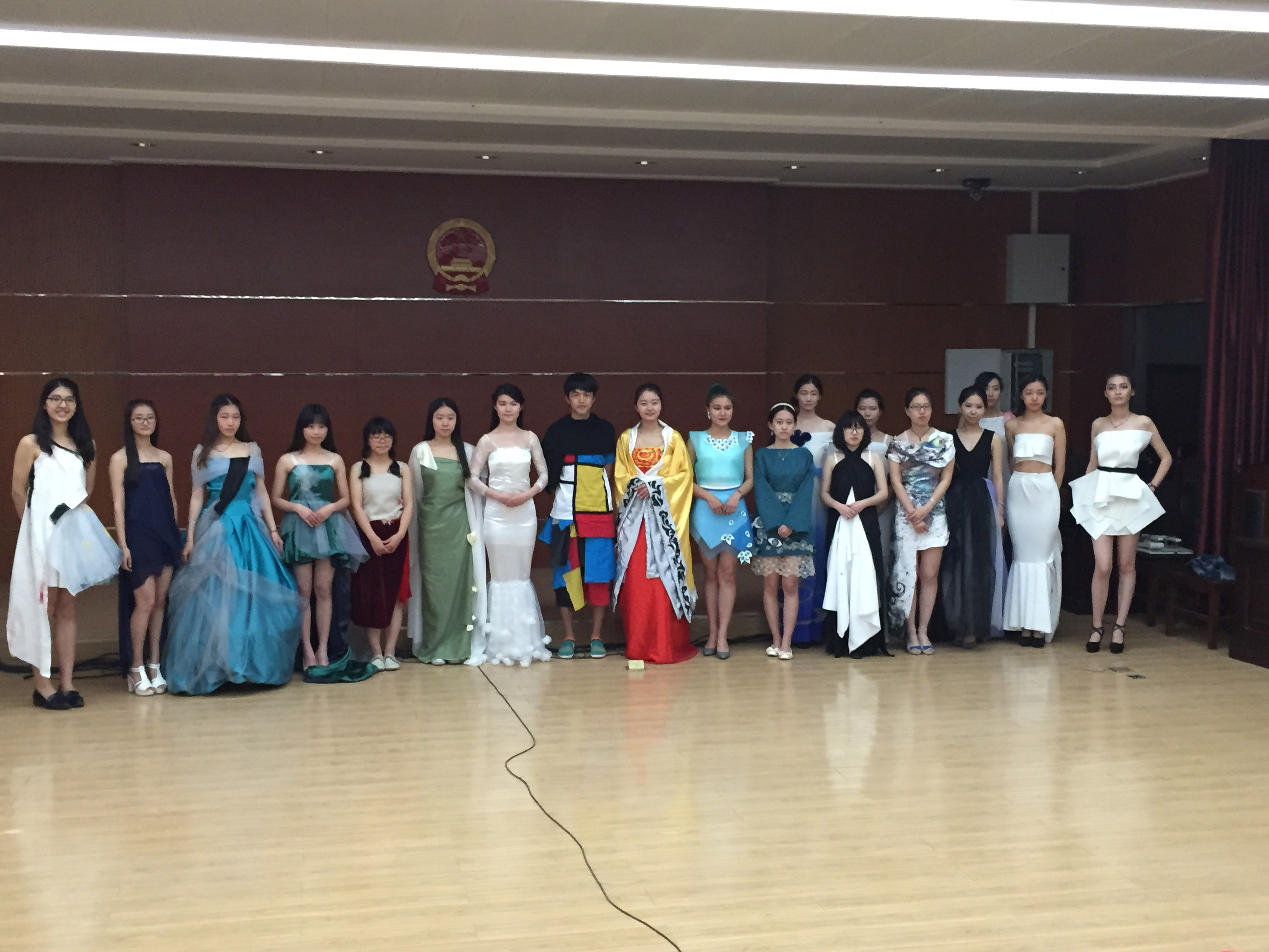 钟铃老师、阚玉德老师、张羽老师三位美术设计及表演经验丰富的老师担任评委,有来自全校5个学院的22组选手近百名同学参加了比赛。此次竞赛于四月初拉开帷幕,参赛选手积极参与,充分发挥想象力与创新能力,经过半个月的精心准备,将各组精心设计的服装展现给大家。