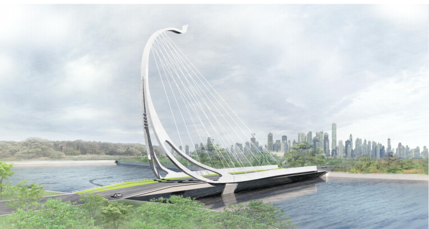 其中的车行桥“竞舸桥”寓意“百舸争流”。出自毛泽东诗词《沁园春长沙》中的名句。百是指多,舸是船的意思,上百条船争着在水上疾驰,形容很多人都在奋勇前进。这正意味着雄安新区作为一个新发展理念的创新发展示范区,未来将会吸引众多的人才来这里共谋发展,扬帆远航,开创高质量高水平社会主义现代化城市主城区的辉煌未来!