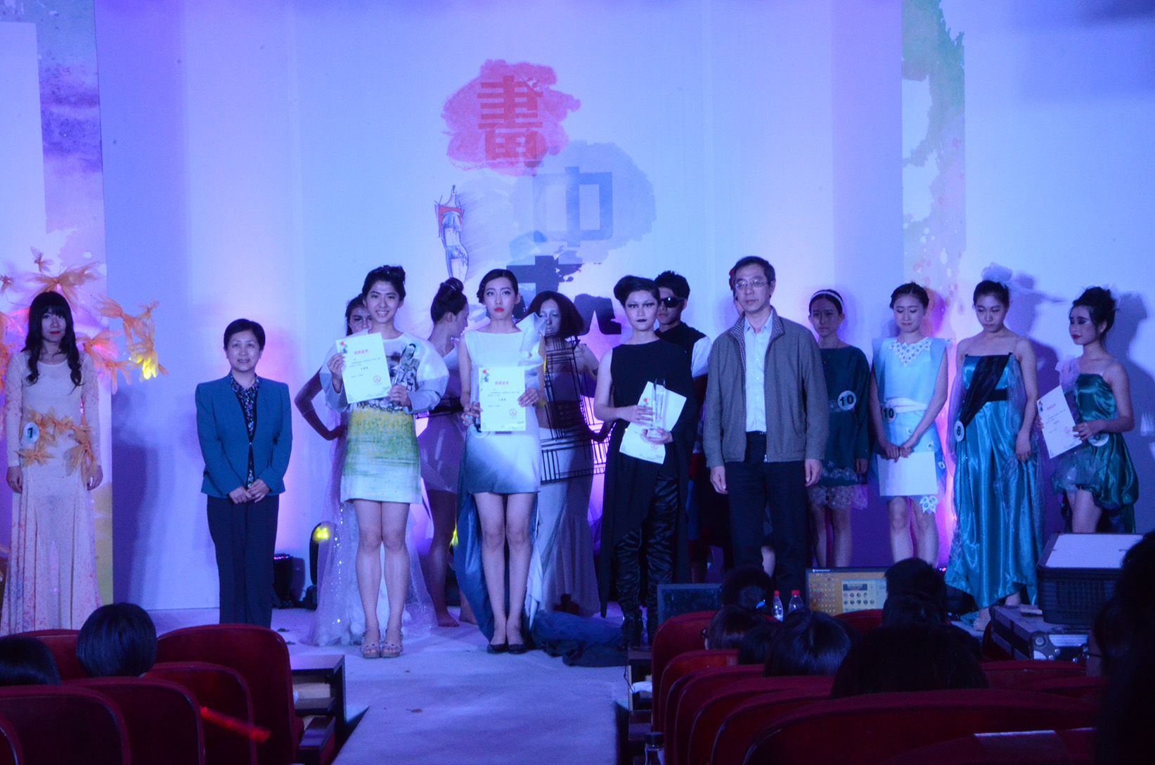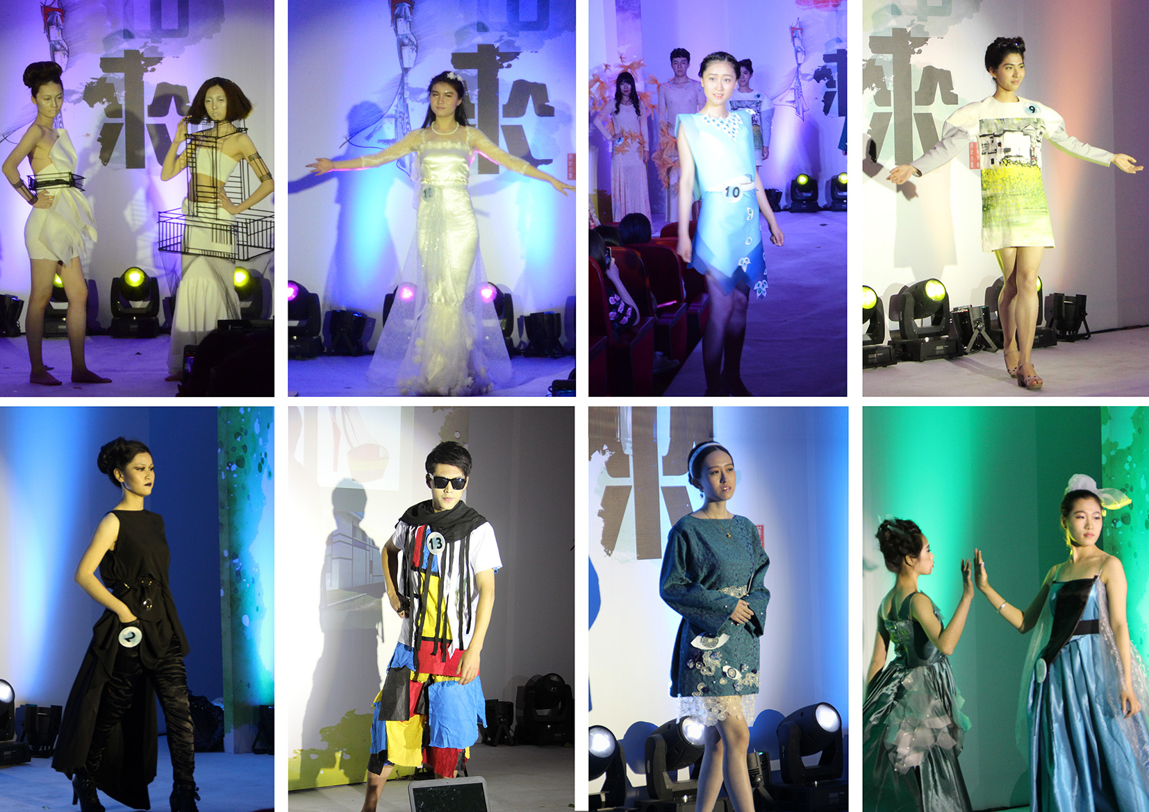 团委学生会承办,全校6个学院的14组队伍进入最后的对决,经过初赛的历练以及专业服装设计师李坤等外聘老师的指导,选手们向大家展示了设计团队精心设计、剪裁并亲自加工制作的精美服装。从抽象大器的蒙德里安到悠扬潇洒的水墨丹青,各组同学经过元素提取和灵感转化,再配以模特走台的伴奏和包含设计理念、记录制作过程的视频展示,呈现出的服装,难分伯仲,各有千秋。