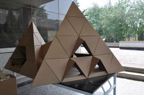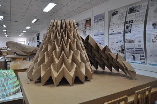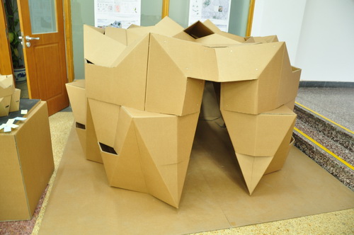 大一设计初步课程教学内容为基础,开展了为期八周的“纸房子建造”课程设计。学生们从独立设计推敲到团队合作深化,最终共同将手中原本柔软的折纸样本一步步建造成可以遮风避雨的精致构筑。