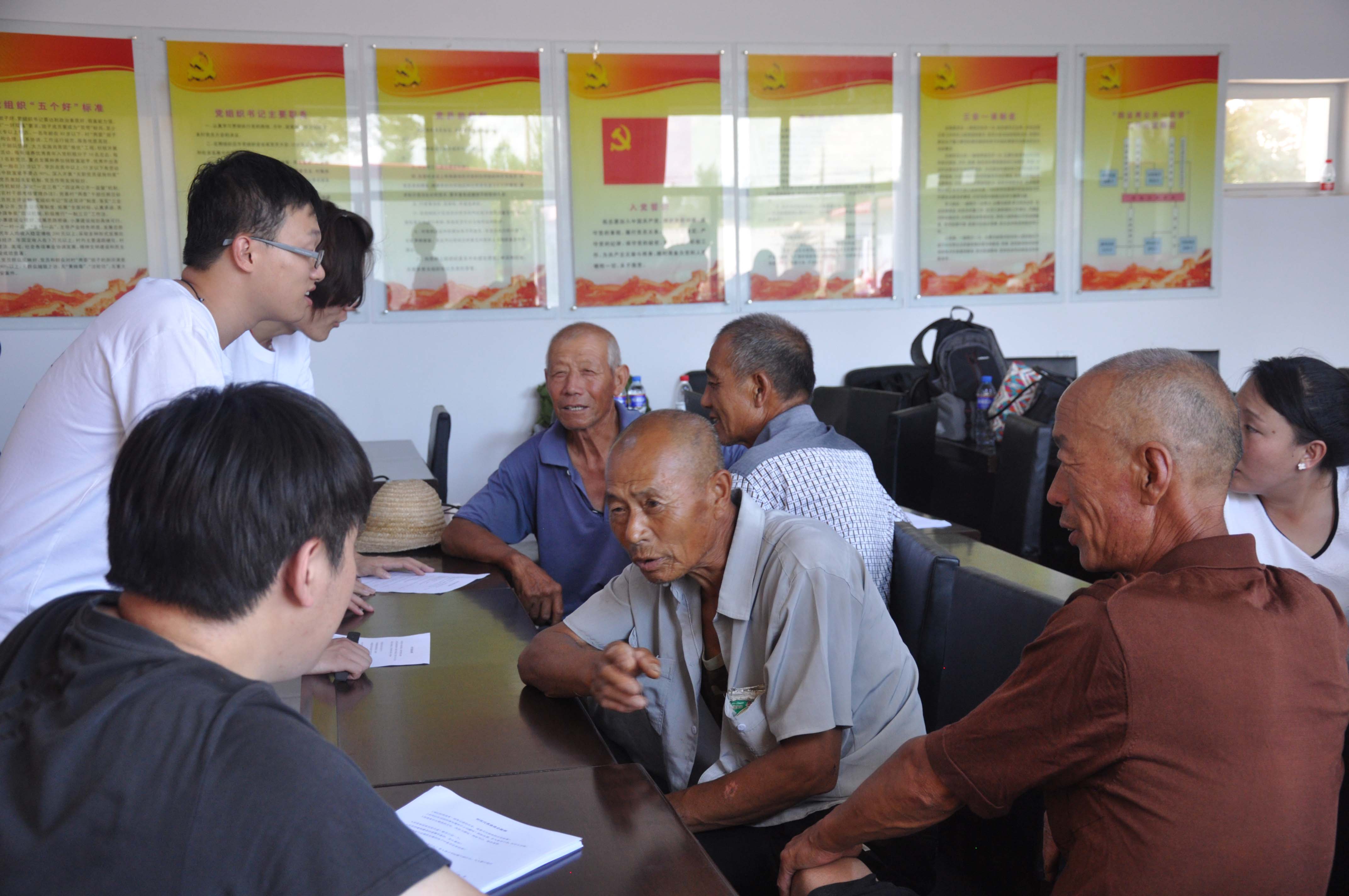 “乡土讲堂”结束后,志愿者同学又与现场的村民进行了深入座谈,志愿者就村落保护、建筑、文化、教育、养老、环境六个方面跟村民进行了详细询问,村民们也纷纷结合自家的情况进行了介绍,填写了志愿者服务团精心设计的问卷,同时,志愿者们还就村落的历史和文化进行了梳理,希望能够从中挖掘出历史文化资源,以为该村将来的规划发展寻求特色。座谈会历时两个多小时,还有热情的村民邀请志愿者去家里参观做客。本次座谈志愿者们收获颇丰,不仅获取了大量原始信息,还拉近了与村民的感情,为下一步的入户调研打下了基础。