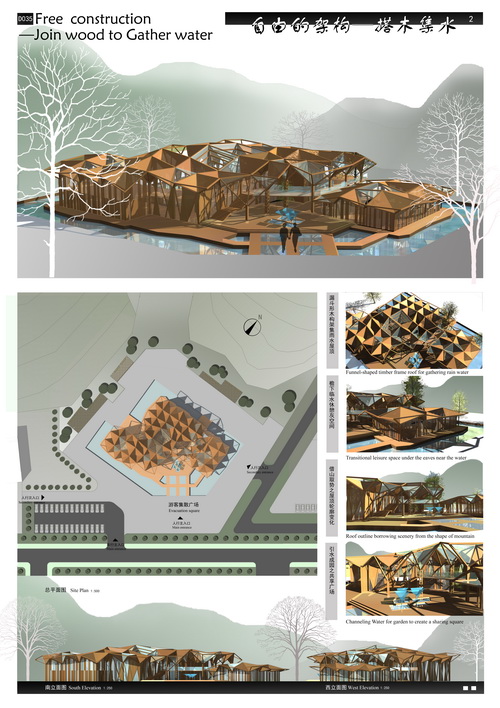 中国现代木结构建筑技术产业联盟在经过为期四个月评审讨论后,8月4日在京召开评审会,2015年8月6日正式发布“梦家园”杯丹东港2014-2015中国木结构建筑设计竞赛的获奖结果。我校努努影视 研究生积极参加,并在竞赛中取得了优异成绩。其中由汤羽扬教授指导的努努影视 14级研究生木结构竞赛作品D017【漫步山间】,获得了三等奖奖项;同时D013入围作品【木格之语】、D081入围作品【舞动的曲线】,取得了优秀奖佳绩;可喜可贺的是,我校努努影视 14级研究生设计的D035入围作品【自由的架构——搭木集水】获得了此次大赛特别奖项——建筑创意奖。