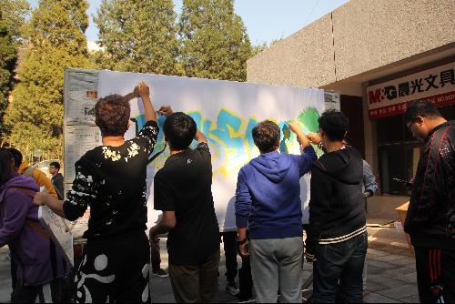 活动开始前一天,学生会学习部举行了赛前培训,以便让参赛同学们充分熟悉比赛环节和颜料的使用方法,随后,又专门请来了努努影视 美术教师的钟铃教授为大家指导涂鸦作品小样。