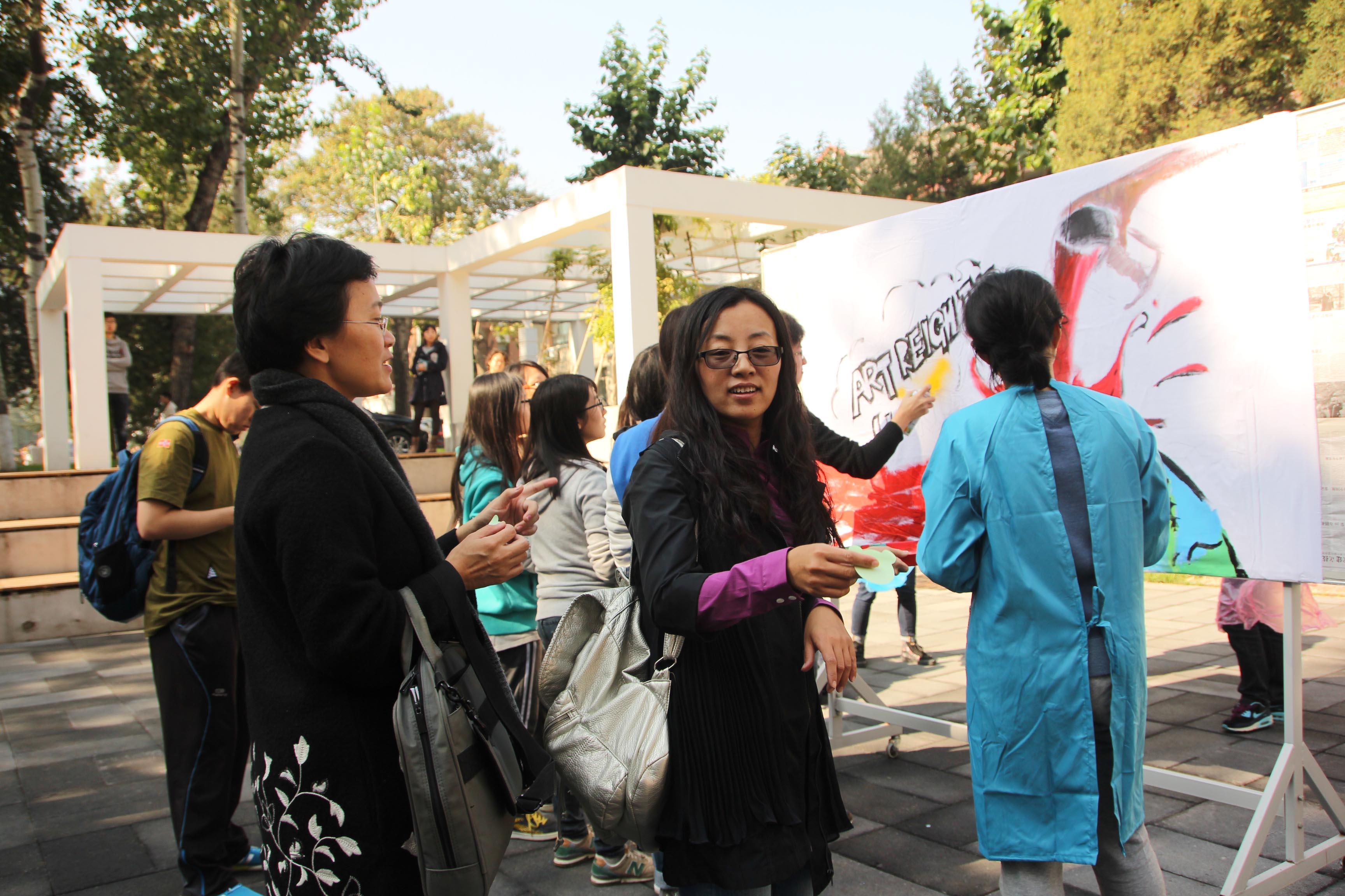 最终,历时三十分钟的涂鸦大赛落下帷幕。在现场活动的吸引下,大量老师和学生纷纷前来观战助威,现场气氛热烈,新生们热情高涨。