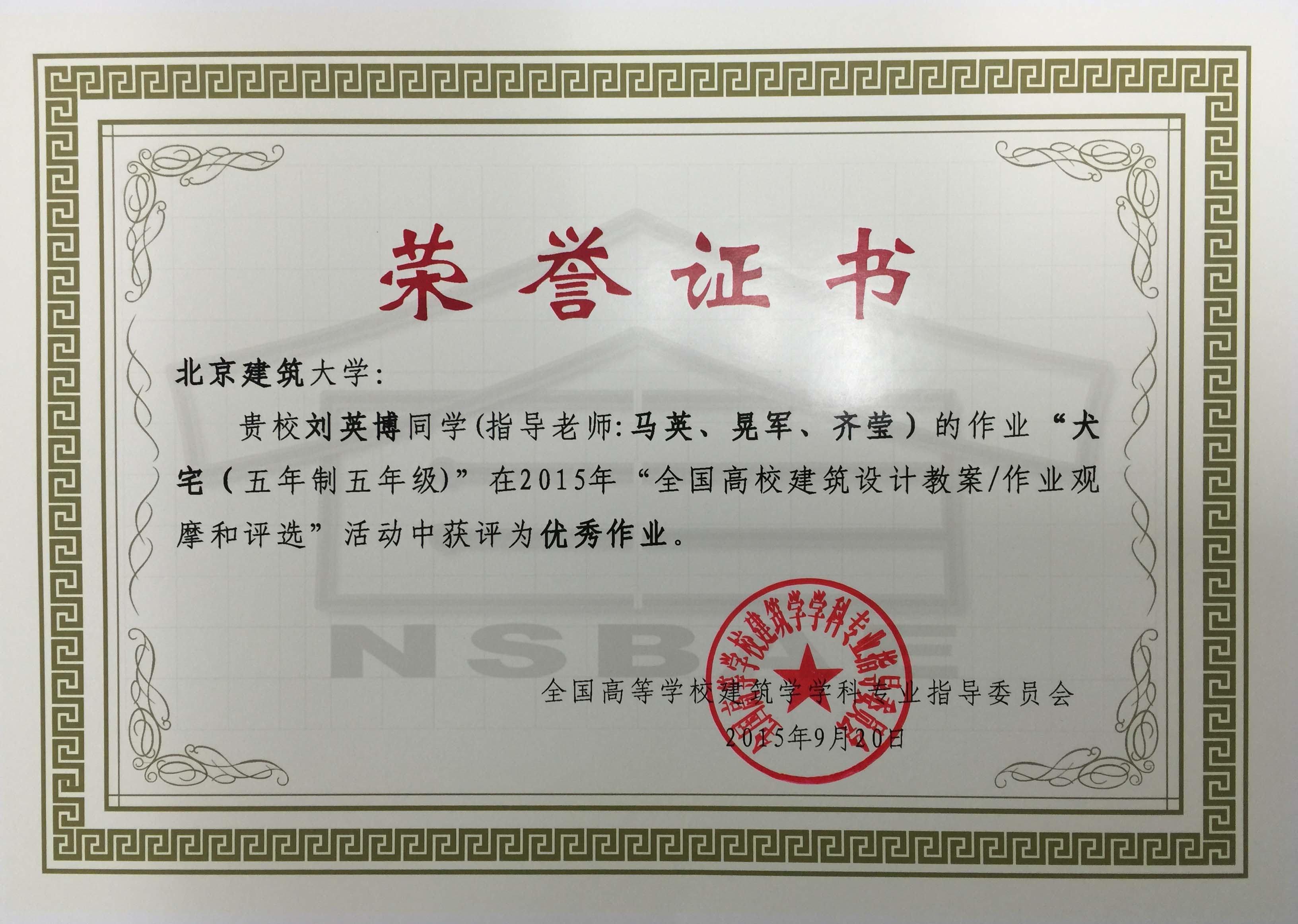 其中五年级毕业设计题目结合全国八校联合毕业设计进行,八校联合毕业设计为由我校作为发起方之一,老师和学生在全国其他兄弟院校的联合调研交流和竞赛中收获颇丰,取得了优异成果。四年级建筑设计教学内容锐意革新,将城市设计与住区规划设计结合,教学成果在北京规划委员会组织的高校设计竞赛中获得优异成绩。此次获得为全国每年举办的专指委教学活动成果最高奖,更是对我校高年级教学成果的最大肯定和鼓励。