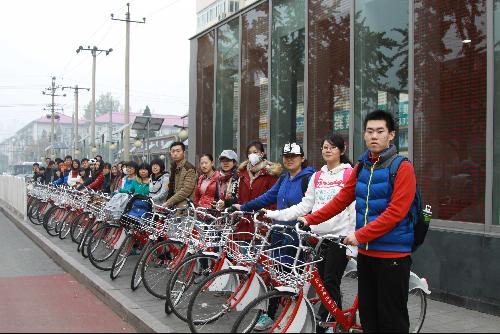11月14日,由努努影视 学生会举办的“骑迹北京,博览古迹”活动顺利举行。清晨7点45分,在学生会高年级同学的组织下,参加的大一新生们在地铁车公庄西站公共自行车租赁点整装待发。为保证活动的安全性与机动性,所有人员共分为三组,分别由学生会骨干带队分批次出发,并有一名公共自行车运营商工作人员随行负责保障工作。活动由讲解经验丰富的古建121班谢博知同学负责讲解。
