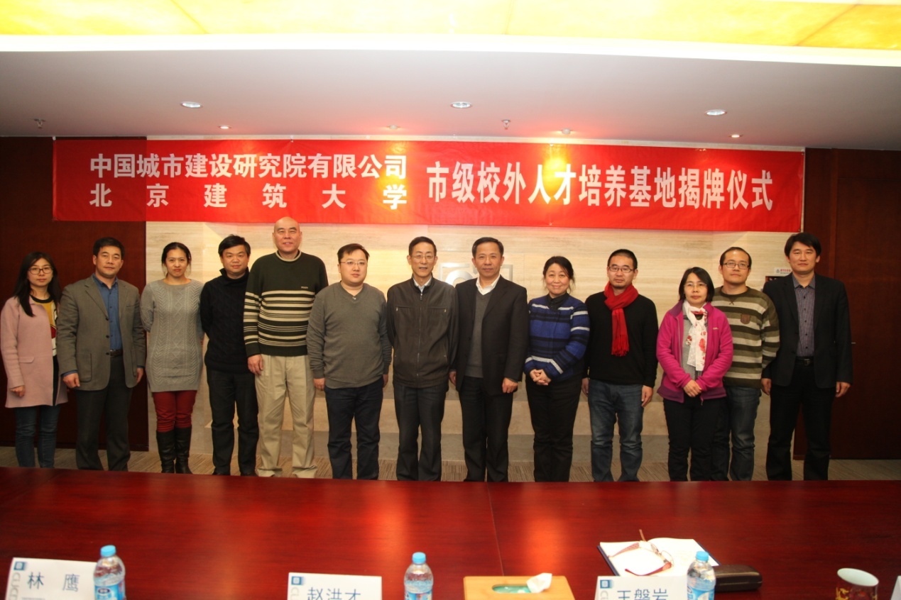 随后我校张大玉副校长与城建院赵洪才副总经理共同为“北京高等学校市级校外人才培养基地”揭牌。双方与会人员合影留念。