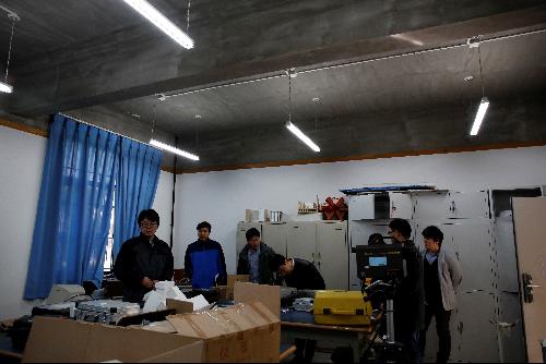 学院办公室主任刘志刚老师重点介绍了学院实验室的构成、职能、及使用管理制度,并带领大家实地走访了建筑物理实验室、建筑模型实验室、木器工艺实验室、金属工艺实验室、绿色建筑与节能技术实验室等机构。