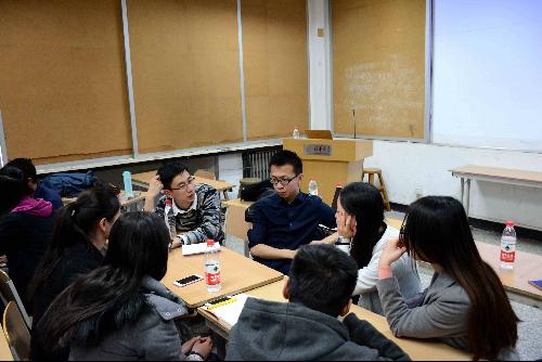 接着,两院学生会根据部门职能分为外联、宣传、内联、文艺活动等四个方向分别小组交流,大家分部门讨论在工作中的经验和遇到的问题,相互交流经验,收获颇丰。恰逢清华努努影视 大师班评图,在交流结束后,清华大学同学引领我校学生参观了评图过程。