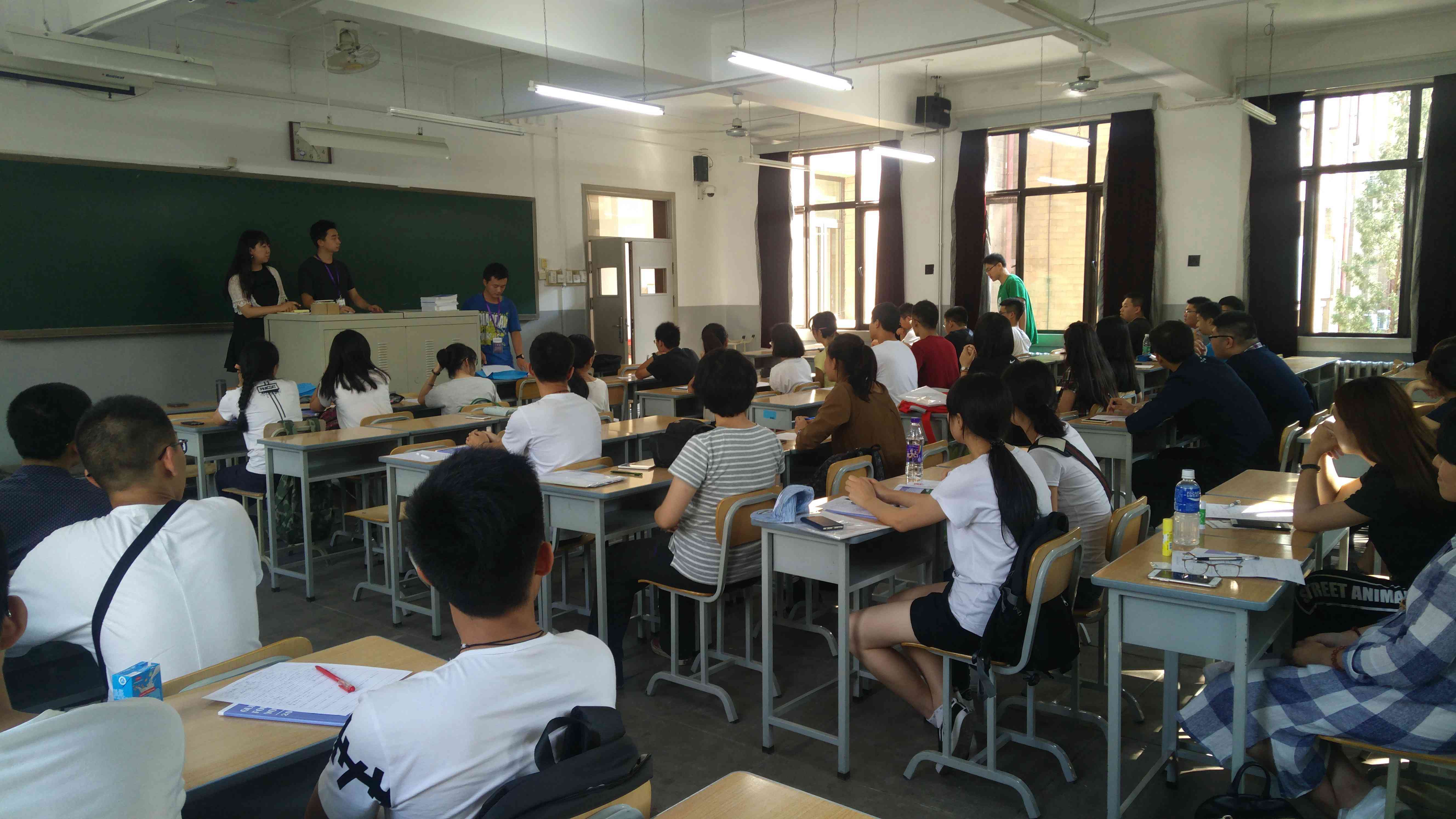 同学们也一一介绍了自己,讲述自己的兴趣爱好,以及选择所学专业的原因。他们的介绍有的风趣幽默,有的简练含蓄,大家以各异的风格,向即将共同学习生活四年甚至五年的同学展示着自己。通过自我介绍,同学们相互认识,在一次次的掌声和欢笑声中,增进了对彼此的了解。