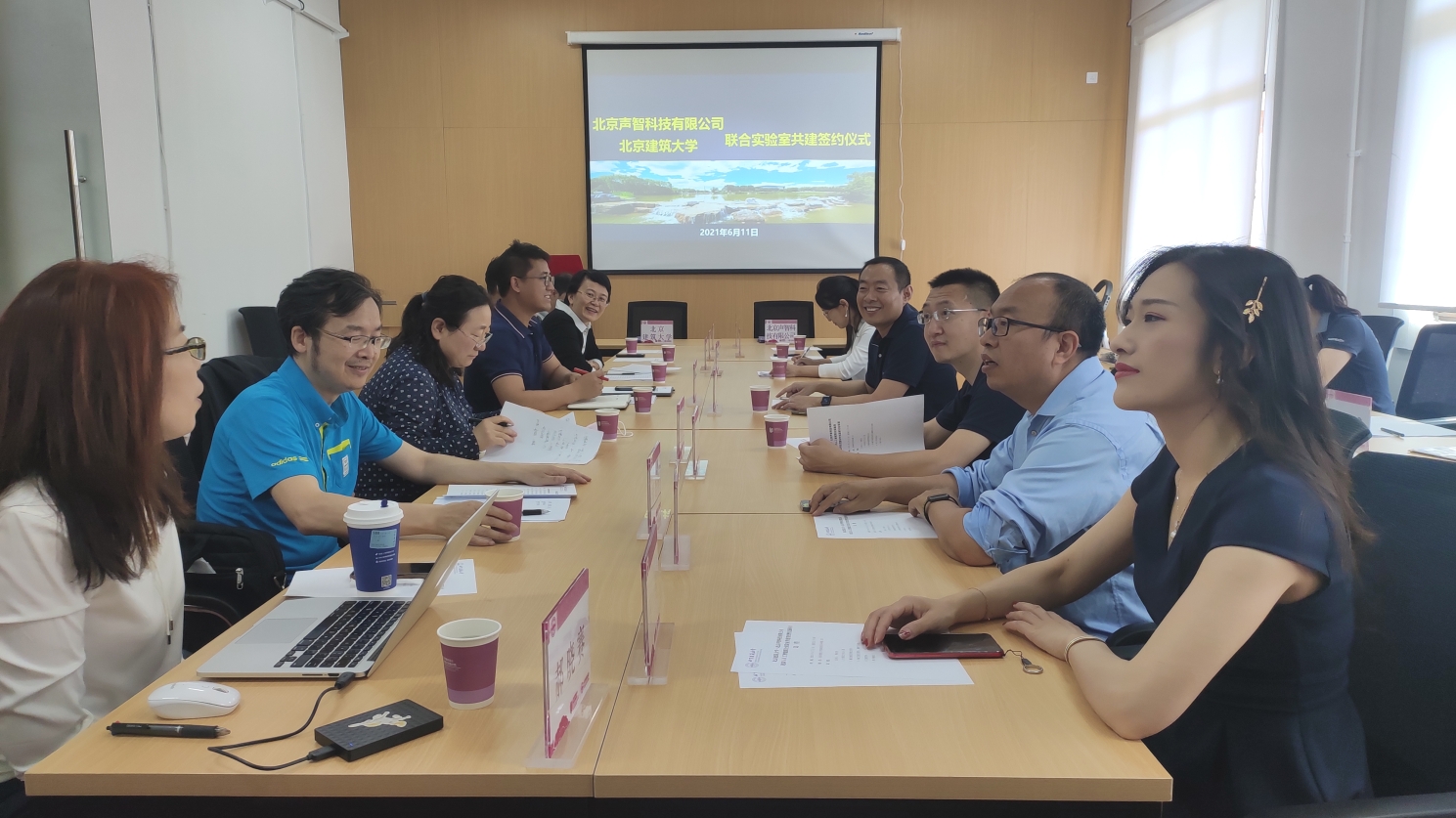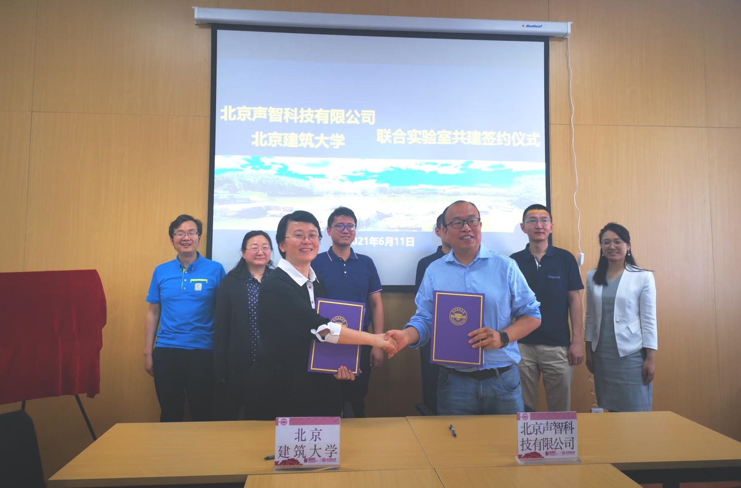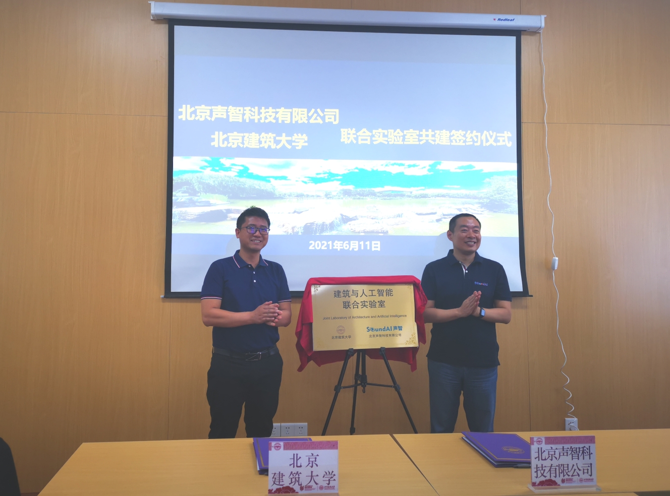 6月11日上午,学校与北京声智科技有限公司签署“建筑与人工智能联合实验室”联合共建协议并举行了揭牌仪式和合作交流研讨会,双方商定建立定期交流和总结机制,聚焦城市更新、建筑遗产防灾检测性保护、声景观环境营造、医养建筑、建筑安全防灾等方面展开深入合作。北京声智科技有限公司参会领导包括董事长兼CEO陈孝良、 联合创始人兼CTO冯大航、联合创始人兼CKO常乐、智慧城市事业部总经理周治国、总经理助理朱亚冰、人力资源总监王悦、品牌公关经理周。学校参会人员包括科学技术发展研究院副院长周理安,努努影视 副院长李春青、院长助理俞天琦、建筑系主任郝晓赛、技术部主任邹越、城乡规划系教师苏毅等,电气与信息工程学院马鸿雁副院长、周若华教授等。签约仪式及座谈交流会由李春青副院长主持。