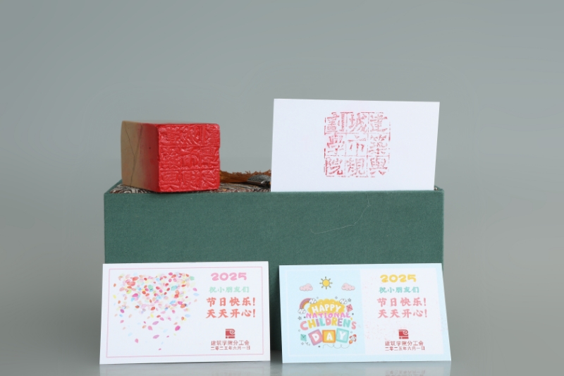 学院分工会同时还为小朋友们准备了精美的两款贺卡,贺卡背面加盖学院特制印章,此枚印章由王光新老师精心篆刻。两款贺卡随机放入礼物“盲盒”内。本次活动受到学院教职工及小朋友们的喜爱。