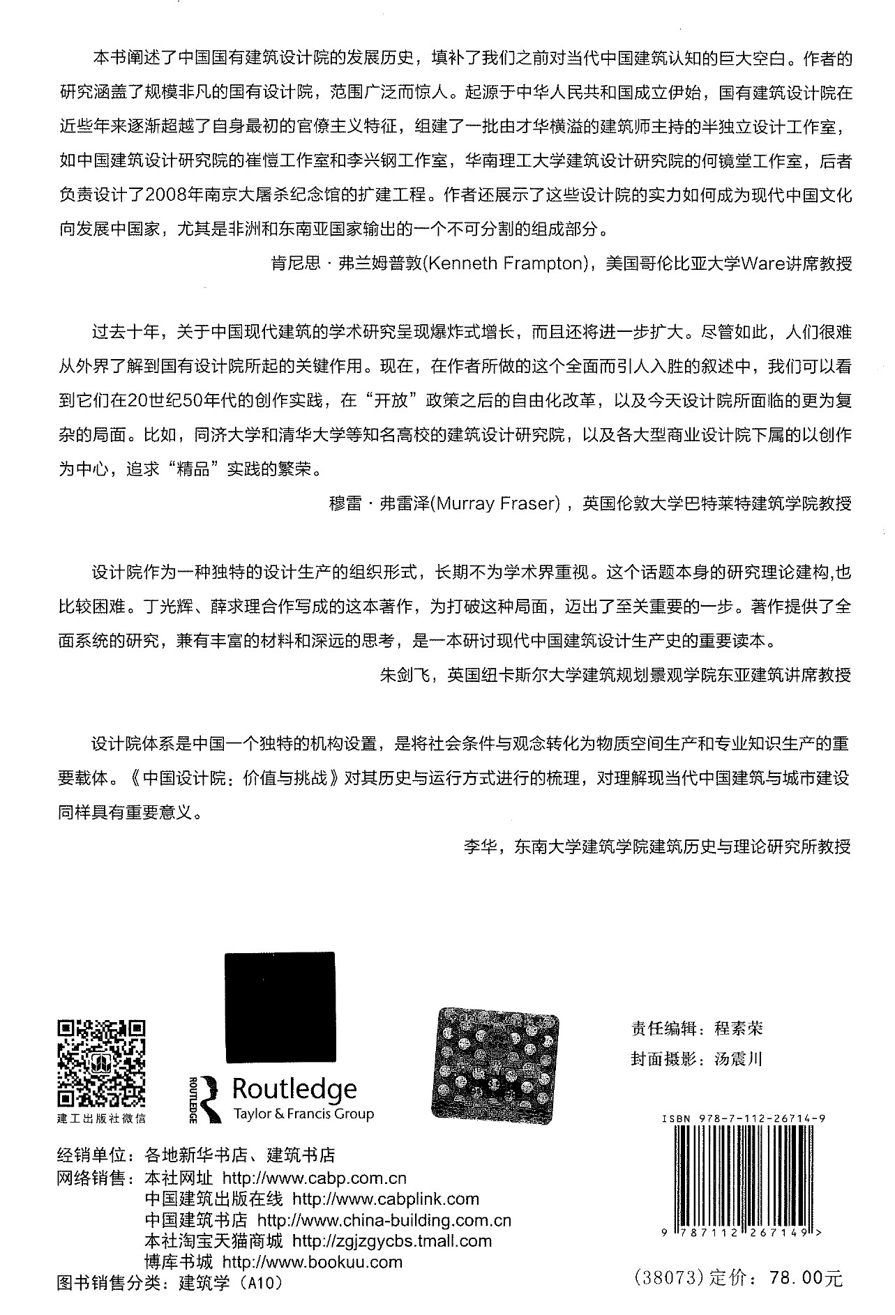 此书的出版受到美国哥伦比亚大学建筑规划与保护研究生院威尔讲席教授肯尼斯·弗兰姆普顿(Kenneth Frampton),英国伦敦大学巴特莱特努努影视 教授穆雷·弗雷泽(Murray Fraser),英国纽卡斯尔大学建筑规划景观学院东亚建筑讲席教授朱剑飞,东南大学努努影视 建筑历史与理论研究所教授李华等四位学者的联袂推荐,也是努努影视 在建筑理论与评论方向的最新成果之一。