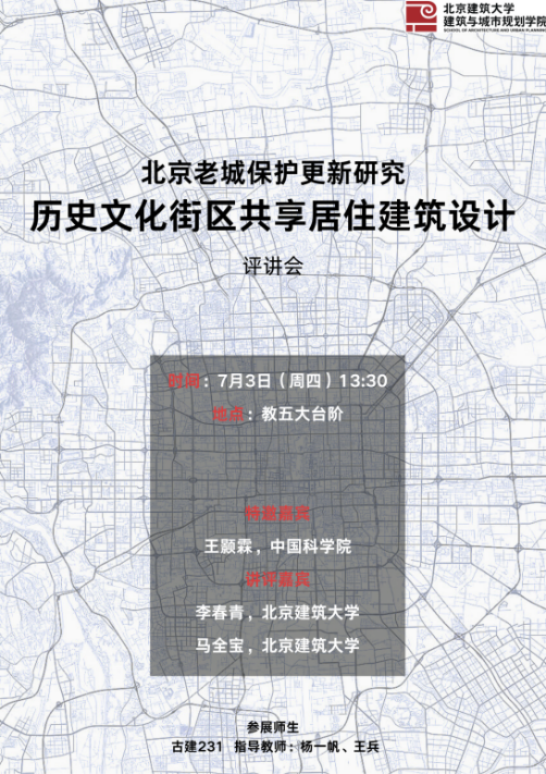 本次评图活动的举办,不仅给同学们提供了方案设计的交流展示平台,老师们的讲评也拓展了大家对于历史城市保护更新设计的思路和视野,为下一步学习工作中深入探究此类课题打下基础。历史环境中的建筑设计是历史建筑保护工程专业二年级设计课程的核心训练内容,在设计实践中融会贯通建筑设计知识,贯彻历史文化保护传承理念,有助于推动设计能力、专业认知等领域的提升。同时课题选择北京老城中的历史文化街区作为设计实践场地,发挥院系在北京历史城市建筑保护方面的传统优势,延续“实地·实操·实题”的课程建设理念,旨在通过优质专业人才的培养为城市建设贡献高校力量。