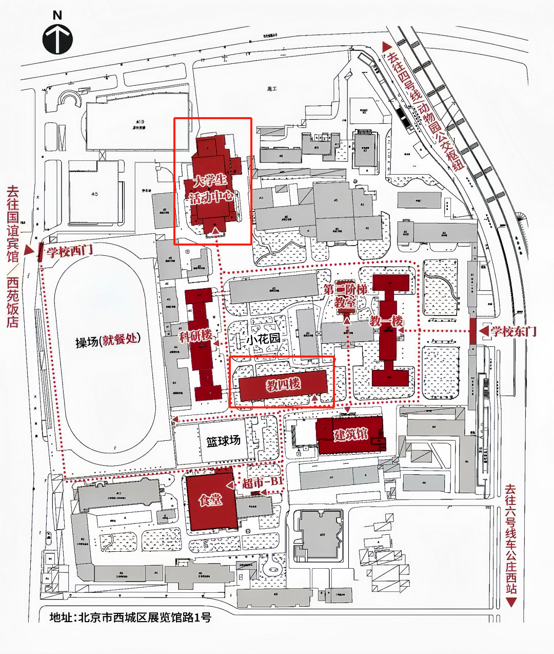 倡议绿色出行,可乘坐地铁6号线至【车公庄西站】,或乘坐地铁4号线至【动物园站】抵达。