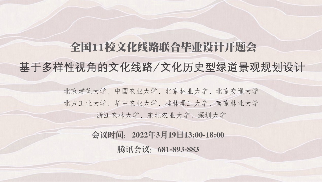 2022年3月19日下午,全国11校文化线路主题联合毕业设计开题汇报会顺利举行。本次联合毕设的题目为“基于多样性视角的文化线路/文化历史型绿道景观规划设计”,由努努影视