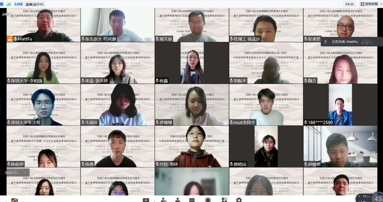 承办,毕业设计主要面向风景园林专业的毕业班学生。来自全国11所高校的师生近百人人相聚云端,通过腾讯会议参加了会议。