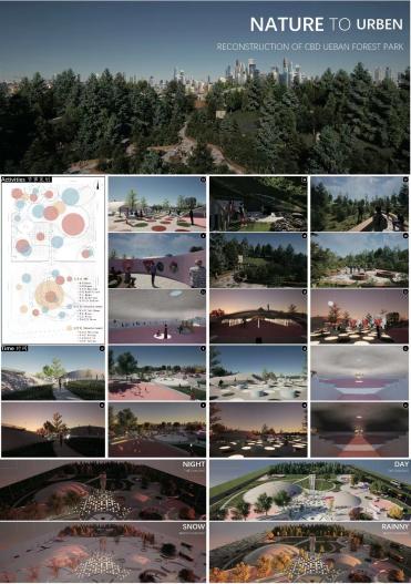 作品简介:在当今社会中,人们总是把自然破坏之后才意识知道自然的重要性,在CBD场地中更是如此,因此,如何让人们意识到自然,以及在二元对立的视角下呈现自然和城市的冲突成为本课题最重要的设计依据。