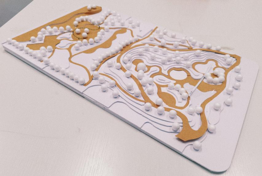 作品简介:从“为什么建造这个公园,这个公园长什么样,这个公园怎样缓解人们的压力”三个方面入手进行方案的展示。园内南侧的主要道路顺应原本的地形高差未做较大变动,通过相关理论将整个公园分为北侧的动态疗愈空间(运动疗法),主要针对低度负向情绪使用者(忧伤、失落、消沉),以及南侧的静态疗愈空间(感官疗法和作业疗法),主要针对高度负向情绪使用者(焦虑、慌张、悲愤)。在设计中主要通过三种疗法进行压力的缓解。
