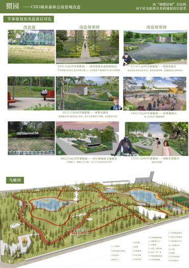 作品简介:通过对周边10/15分钟健身圈的分析,结合“全民健身”的倡议,进而分析了场地外部人群对运动的需求和对运动设施使用状况,设计出以运动为主题的公园。