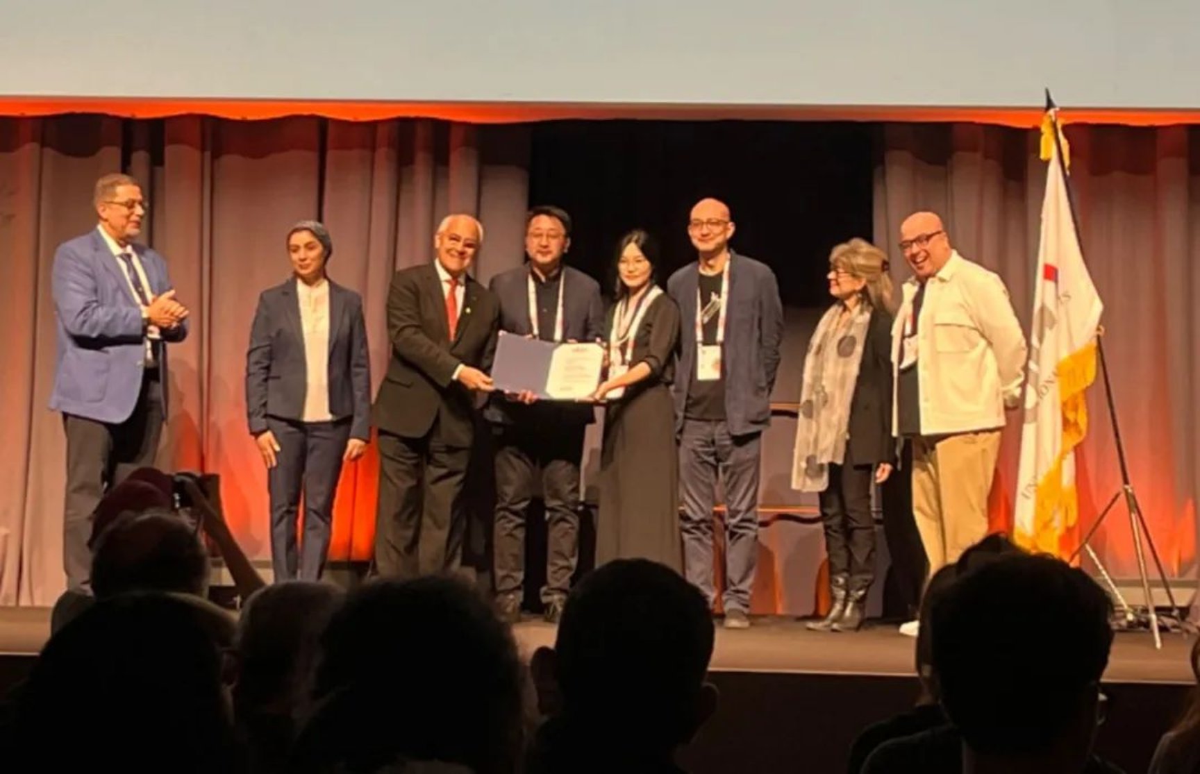 国际建协主席胡赛·路易斯(José-Luis Cortès)向我校团队颁发获奖证书