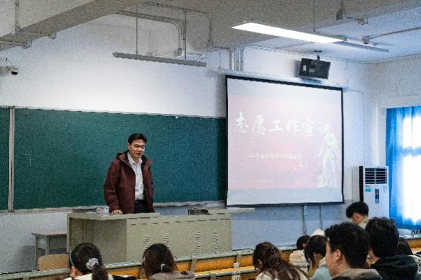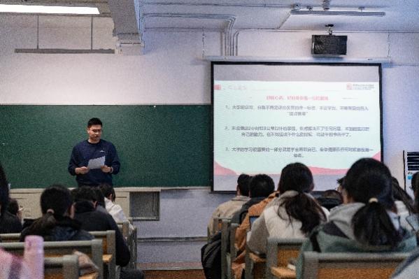 建研245班冯泽华则以“在奉献中成长,在探索中前行”为主题,结合自身在学业、竞赛、科研、实习与志愿服务等方面的经历,为新生提供了具体的成长建议。他以优异成绩升入研究生阶段,曾获国家级及省部级奖项十余项,参与多项专利与论文研究。他总结道,学业是根、竞赛是法、实践是路、志愿是魂——每一个环节都能促进综合能力的提升。冯泽华重点分享了参与“抗战胜利80周年大会”志愿服务的经历,从视频拍摄、培训执行到通联体系搭建,用行动诠释了青年志愿者的责任与担当。他勉励新生要以目标为导向,在学习中积累知识,在实践中锻炼能力,在奉献中实现自我成长。