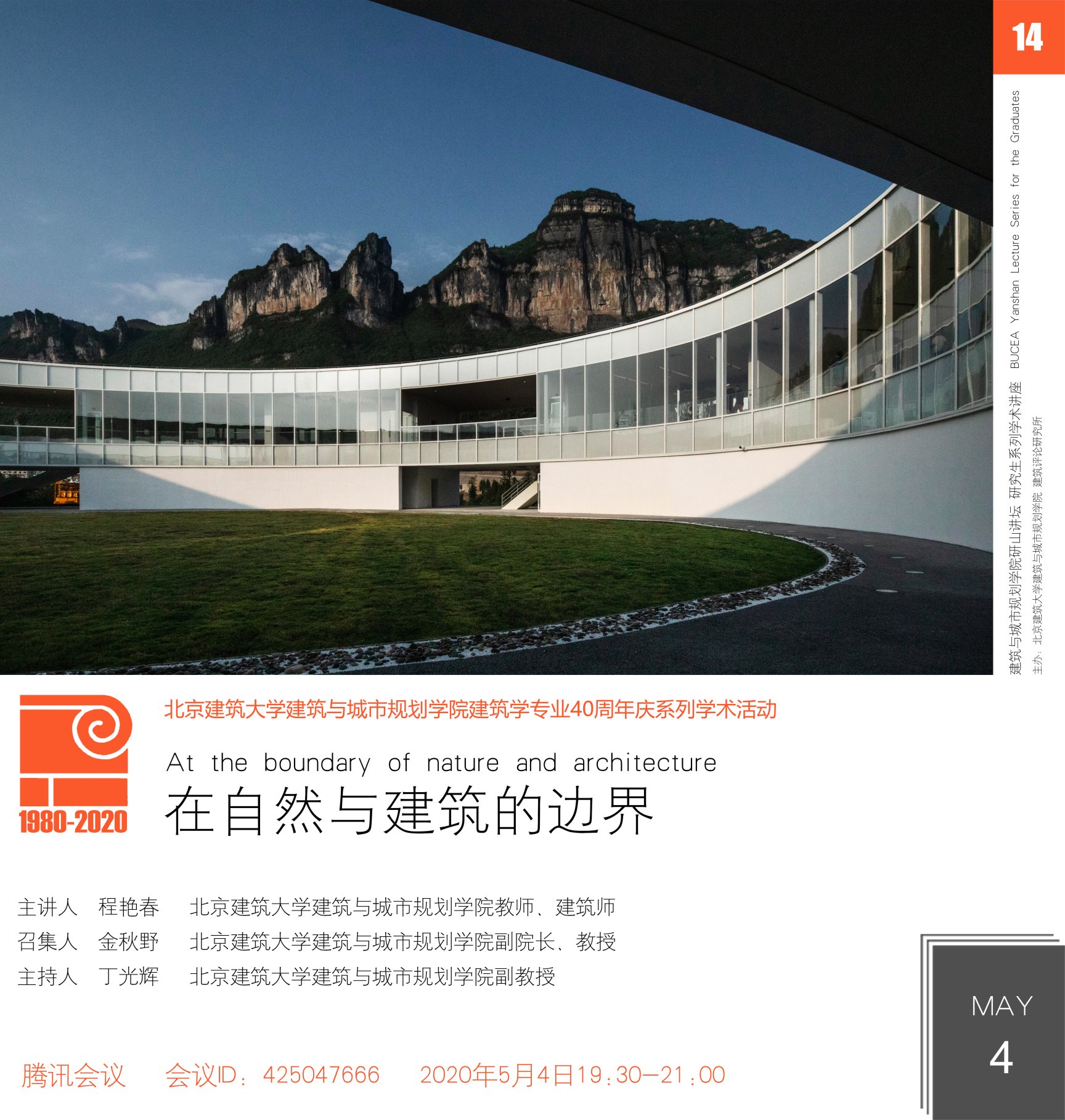 “研山讲坛”创办于2019年9月,是努努影视 以研究生交流为目的的系列学术活动,活动由努努影视 常务副院长金秋野教授召集。学术活动主要采取讲座、交流形式,邀请国内外知名建筑学者和一线建筑师,分享研究成果、实践作品以及设计思想,促进在校研究生开阔视野、树立职业目标,搭建具有努努影视 特色的研究生学术交流平台。2020年是努努影视 建筑学专业创办40周年,“研山讲坛”作为“40周年庆系列学术活动”的重要内容之一,也将不断探索完善,发挥其学术号召力。
