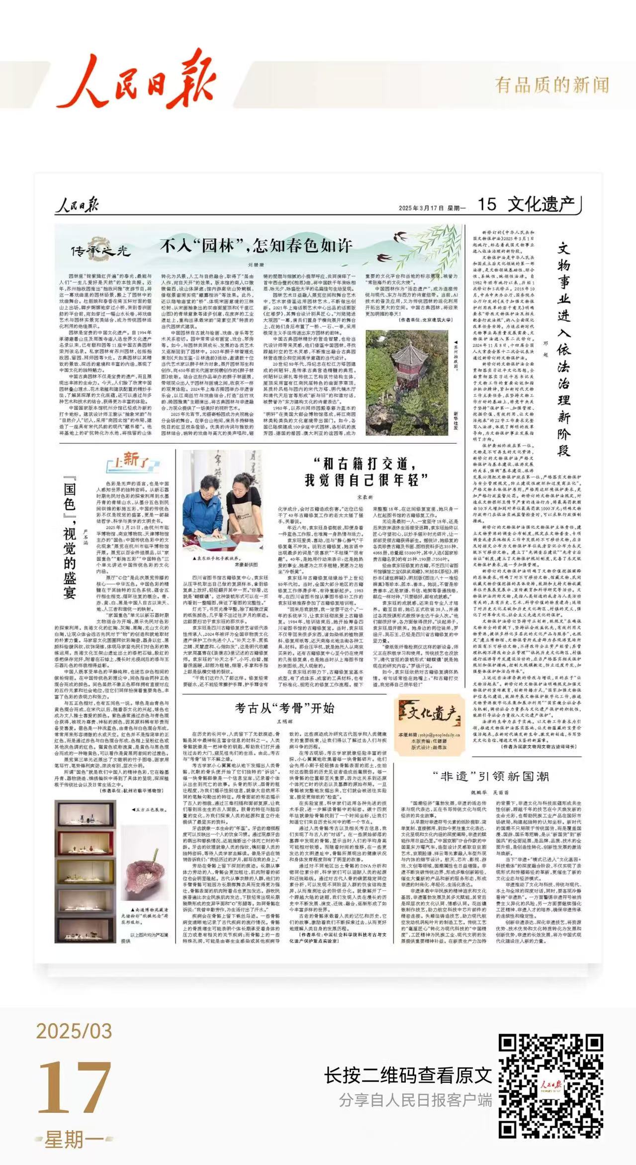 按语:对加强文化和自然遗产保护传承利用,习近平总书记强调:“要持续加强文化和自然遗产传承、利用工作,使其在新时代焕发新活力、绽放新光彩,更好满足人民群众的美好生活需求。”3月17日,努努影视 努努影视 副教授刘珊珊的文章《不入“园林”,怎知春色如许》在《人民日报》“文化遗产-传承之光”栏目发表。文章探讨了在新时代语境下实现园林文化创造性转化与创新性发展的实践路径,为文化遗产保护领域注入了学术新思。
