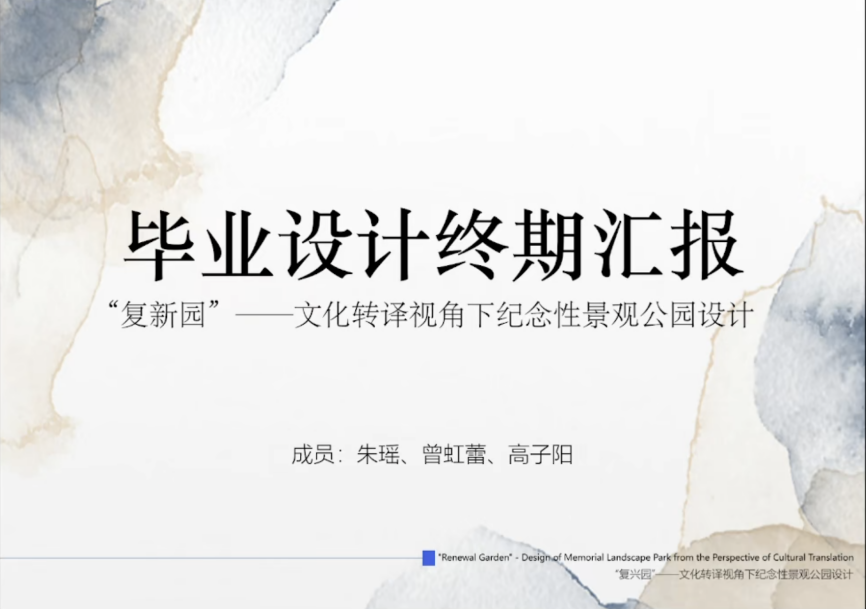 第二组汇报由天津美术学院高颖教授主持,参与汇报的学生来自浙江农林大学、华中科技大学、天津美术学院,各组同学依次围绕《浙东唐诗之路精华段文化线路景观规划设计》、《城市铁路站点遗址的人文复兴与生态保育--以武九铁路北环线徐家棚轮渡码头为例》、《武昌红色遗址与场址的线性整合策略及规划设计应对--以解放路-都府堤片区为例》、《“复新园”--文化转译视角下的纪念性景观公园设计》等成果进行展示。特邀专家杨秀娟、朱颖、赵纪军、张伟以及指导教师张蓝心、张蕊对各组同学的方案进行了点评与指导。广东工业大学江海燕教授对前两组的汇报内容进行了总结评价。
