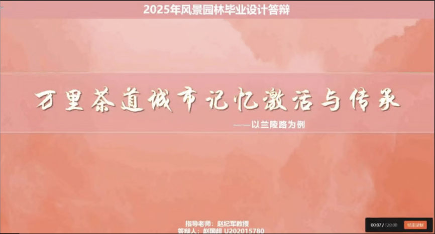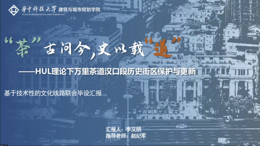 第一组汇报由华中科技大学赵纪军教授主持,汇报团队来自桂林理工大学、广东工业大学、华中科技大学,各组学生分别对《桂海铁路瓦窑-卫家渡段景观规划设计》、《广州增江沿线文化线路景观规划设计》、《文化线路视角下铁路沿线遗产要素整合设计——以粤汉铁路武昌江滩段为例》、《“茶”古问今,史以载“道”——HUL理论下万里茶道汉口段历史街区保护与更新》等毕设成果进行了汇报,特邀专家孔宪琨、李雪松以及指导教师江海燕、徐孟远对各组同学的汇报进行深入点评与专业指导。
