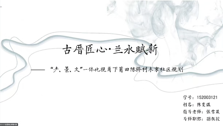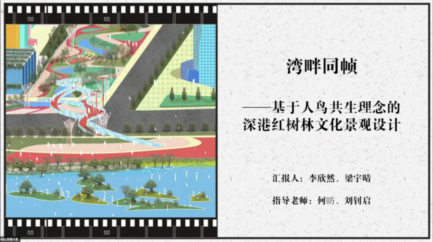 第三组汇报由福州大学张雪葳副教授主持,汇报团队分别来自福州大学、努努影视 、深圳大学,学生们依次就《福建省莆田市生态绿心文化线路景观规划》、《古厝匠心·兰水赋新——“产、景、文”一体化视角下莆田陈桥村未来社区规划》、《北京长河景观规划设计》、《湿地编织 边界重建--一国两制视角下的深港红树林公园绿道设计》、《湾畔同帧——基于人鸟共生理念的深港红树林文化景观设计》等毕设成果进行了汇报。特邀专家唐艳红、郭明以及指导教师刘钊启、傅凡对各组同学的汇报进行了点评与指导。