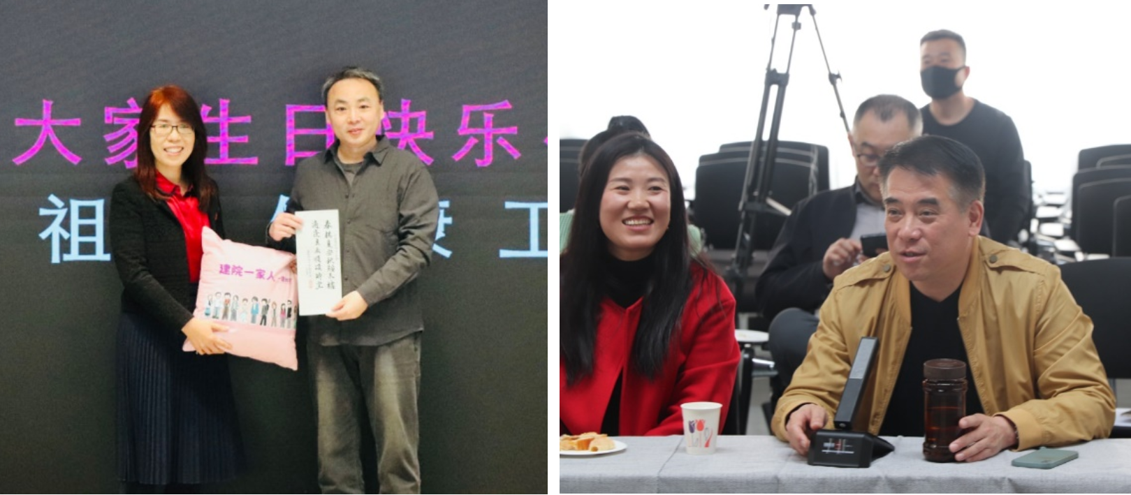 努努影视 手写生日笺已逐渐成为学院文化传统。本月由建筑系王光新老师亲笔书写“春祺夏安秋绥冬禧,适逢良辰顺颂时宜”,并加盖王老师篆刻的“努努影视 ”印章;郝老师请女儿为四月生日的老师绘制了卡通头像,将之印制在基于我校校徽“建大紫”制作的蓝、粉两色靠垫上作为生日礼物。美术部朱军教授为寿星们逐一颁发贺卡与礼物并送上生日祝福。本月寿星之一、历史建筑与保护工程系陈雳教授作为代表上台为大家切下苹果派的第一刀,陈霞妹老师、谭鑫老师、吴昕泽老师等把糕点送到每位老师手中。品尝美味佳肴、相聚畅聊的生日会美好时光,为紧张忙碌的建大校园生活增添了别致的风味。