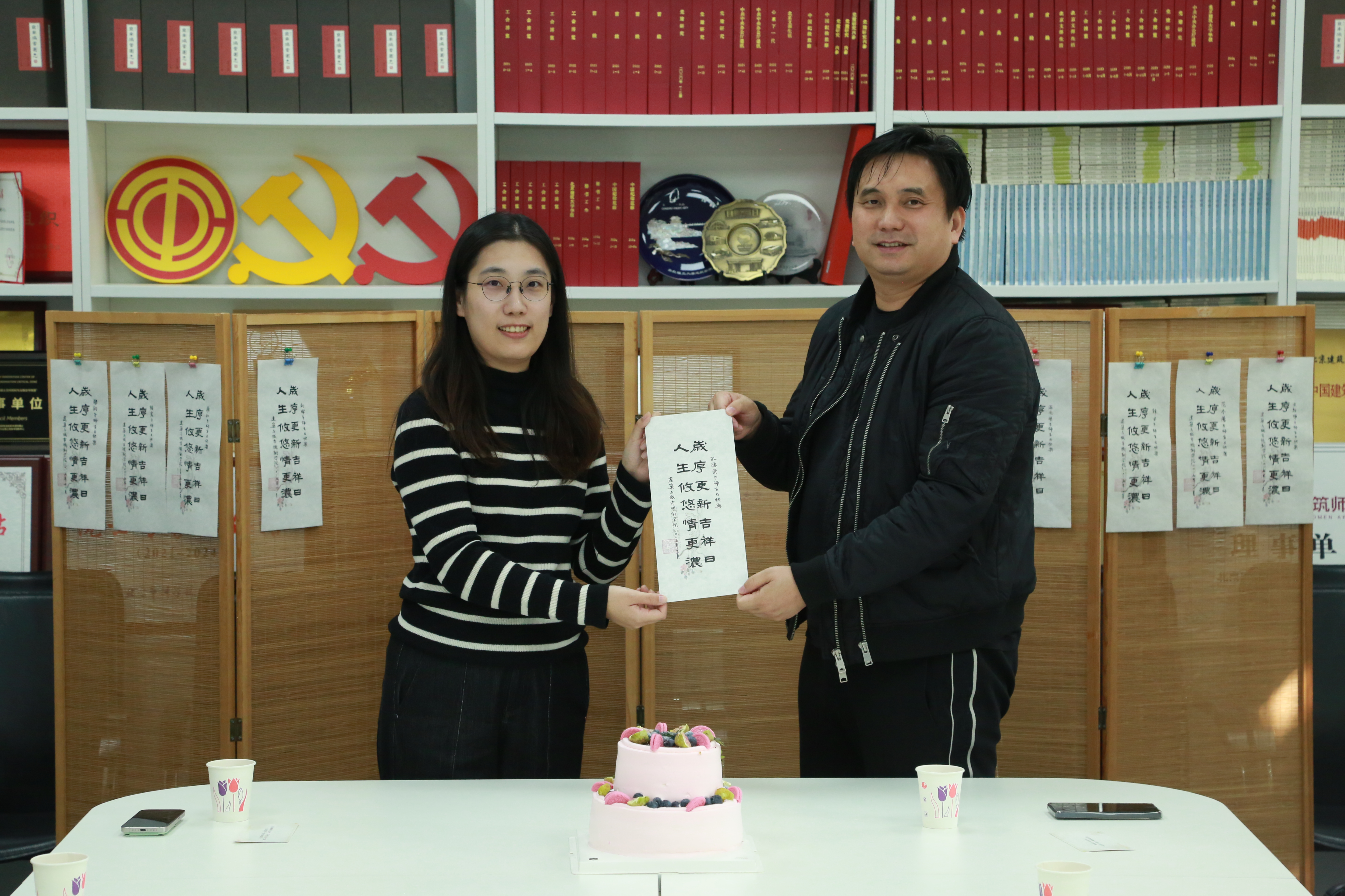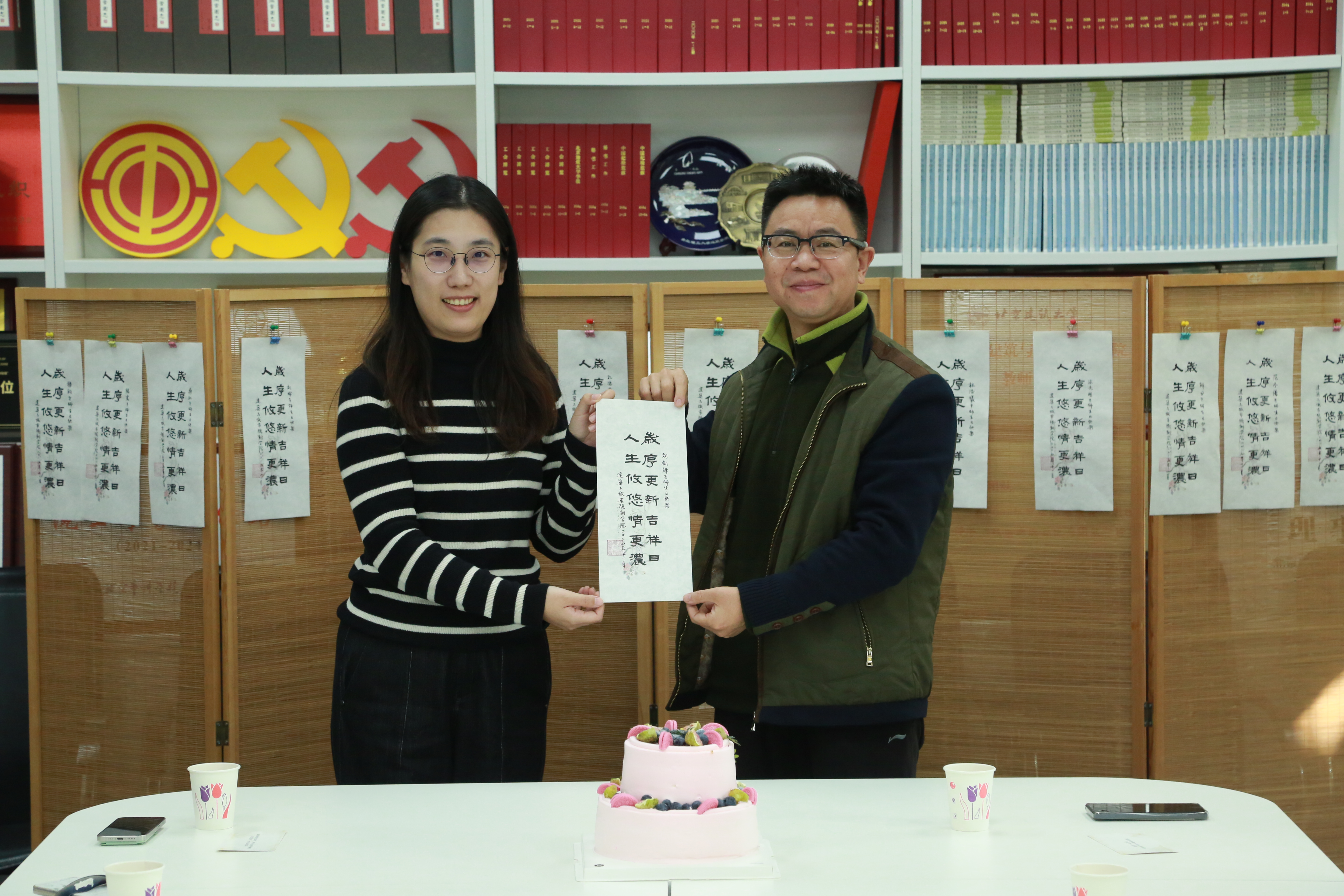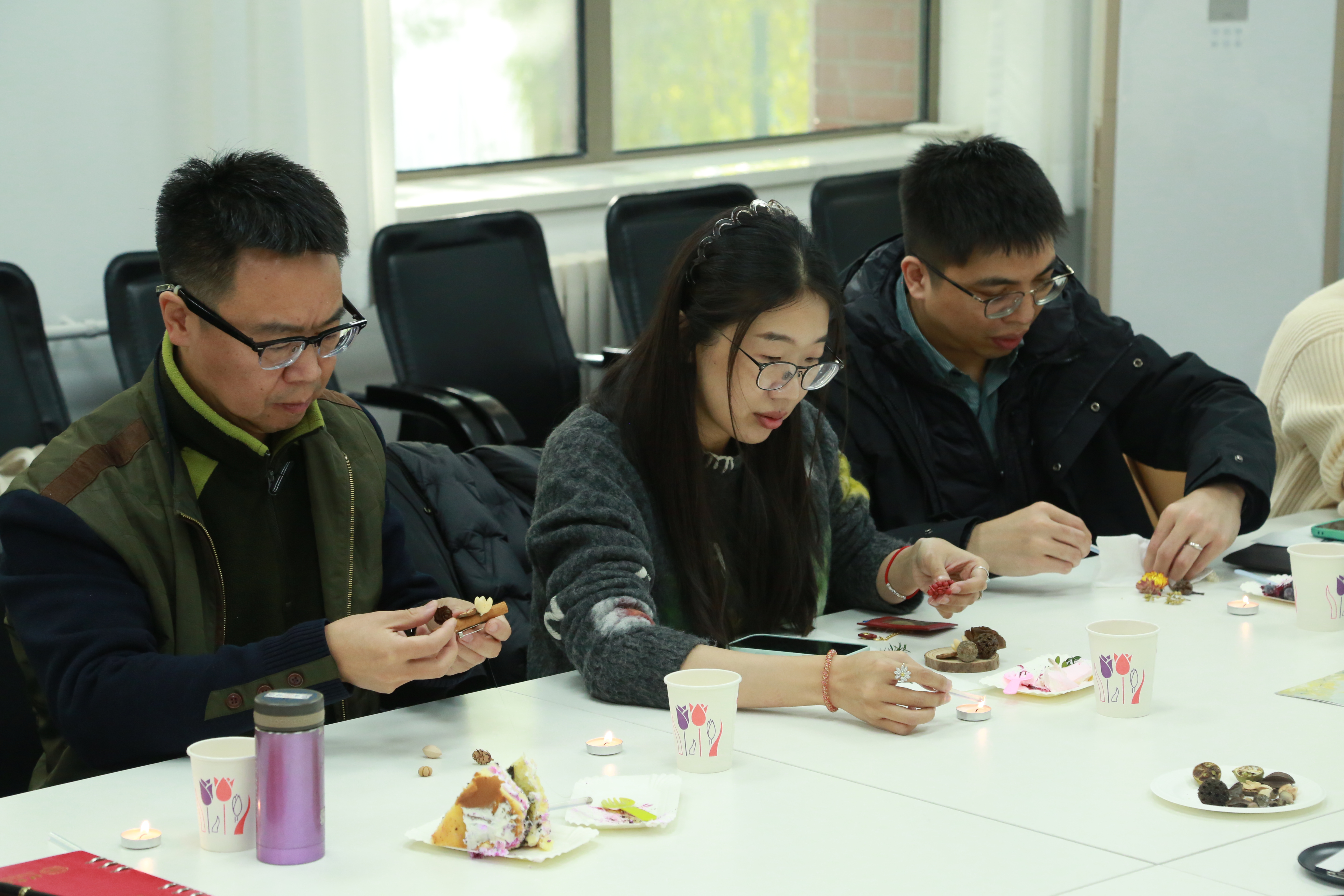 寿星代表刘剑锋老师为大家切分了寓意美好的生日蛋糕。老师们围坐一堂,品尝着甜美的蛋糕,畅谈着工作与生活的点滴,欢声笑语不绝于耳,现场洋溢着家一般的温暖与欢乐。