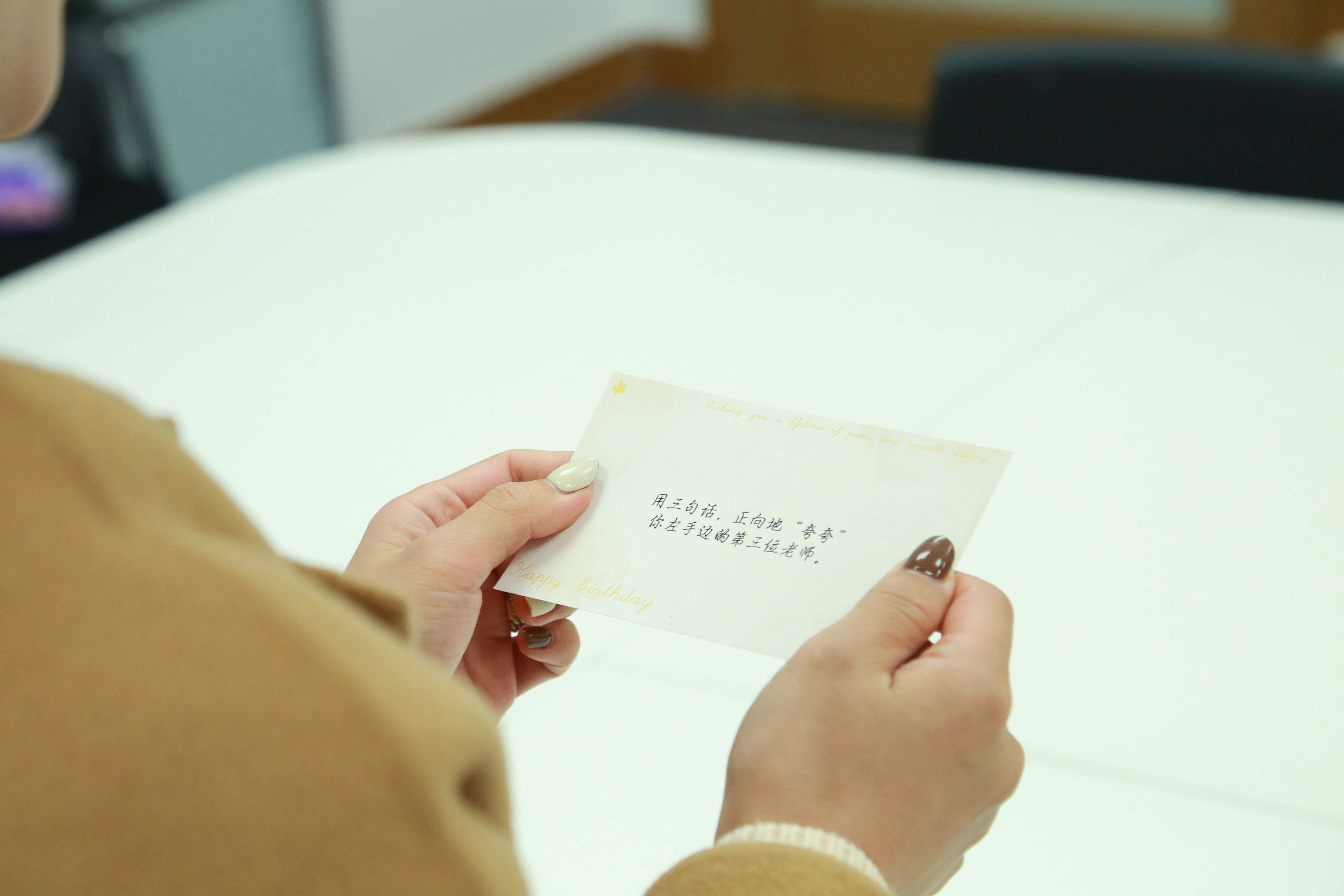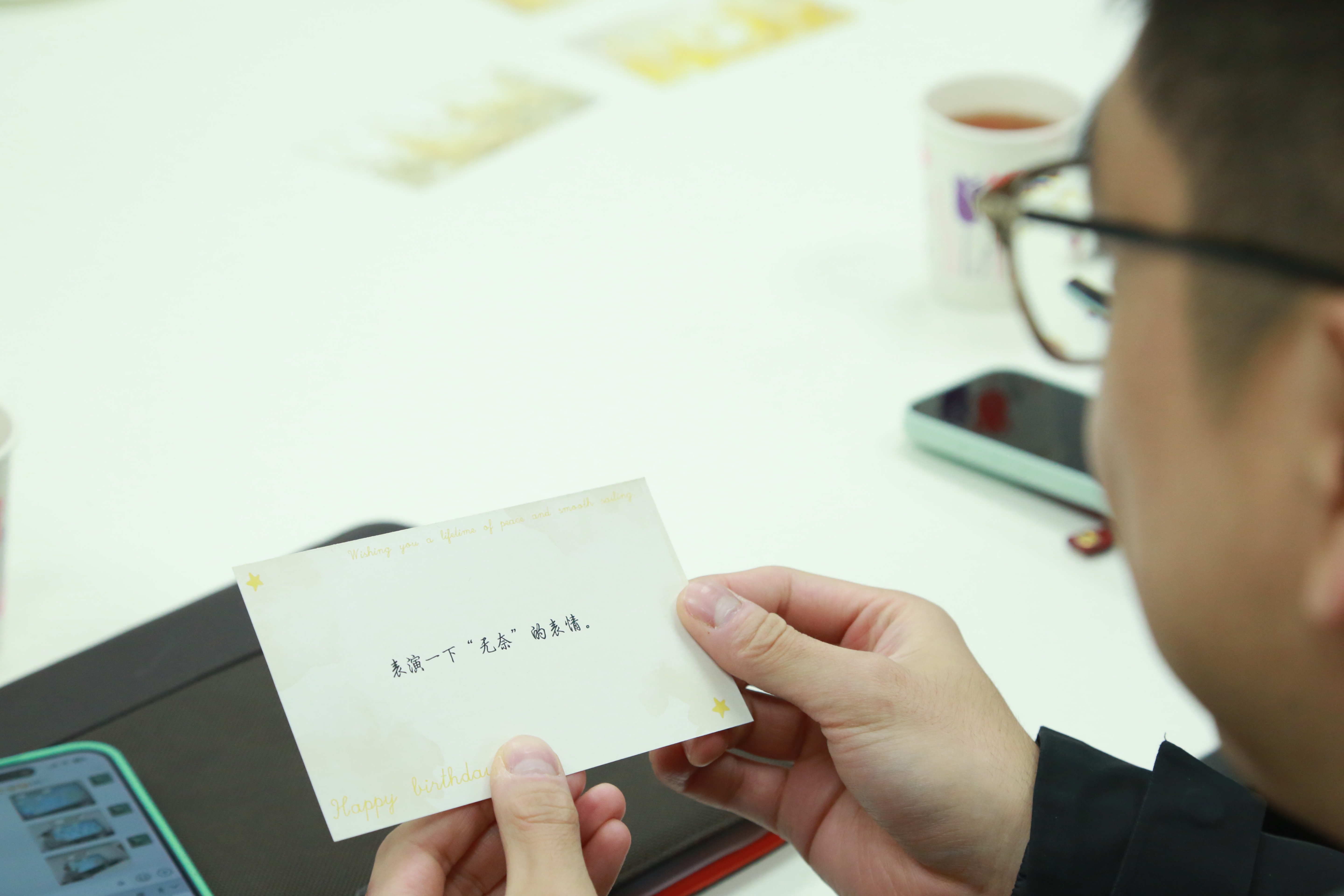学院为寿星准备了丁奇教授书写的精美福笺,表达了对老师们事业与生活的美好祝愿。一纸福笺,不仅是一份礼物,更是一份暖心的纪念。