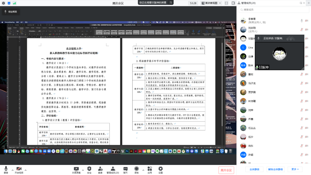 会议首先由刘志刚老师介绍了学校学院关于教学的各种要求,以及开学1-3周线上教学的要求与注意事项,同时解读了学校有关教学责任事故认定处理办法等规章制度的内容。后刘烨、甘振坤、贾园、边谦老师依次介绍了教学教案、教学日历编写、新教师考核的经验。尤其是在教案编写方法、讲课仪表仪态、ppt制作经验、教学方法等方面进行了细致的讲解。