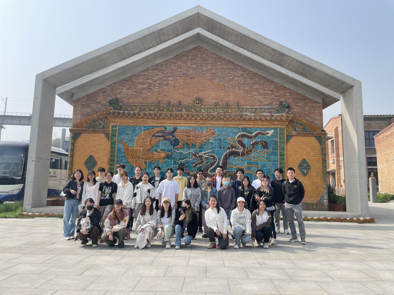 师生参观了琉璃历史博物馆,了解了千年琉璃的薪火传承,了解了自辽代以来京西琉璃的发展历史以及琉璃的制作工艺。展馆内站出来众多瓦件印章,明清时期琉璃构件,历史图片等涵盖了琉璃文化的方方面面。经过脊兽大道,师生来到了生产研发中心,在此对琉璃生产技术有了近距离观看和最直观的感受:车间将“上三作”(吻作、釉作、窑作)和“下三作”(指粗加工、板瓦作、装窑、配料等工种)工艺集于一起,近距离观看到师父们的工作日常。二层则是重现中国皇家建筑标准的官式琉璃构件制作技艺流。