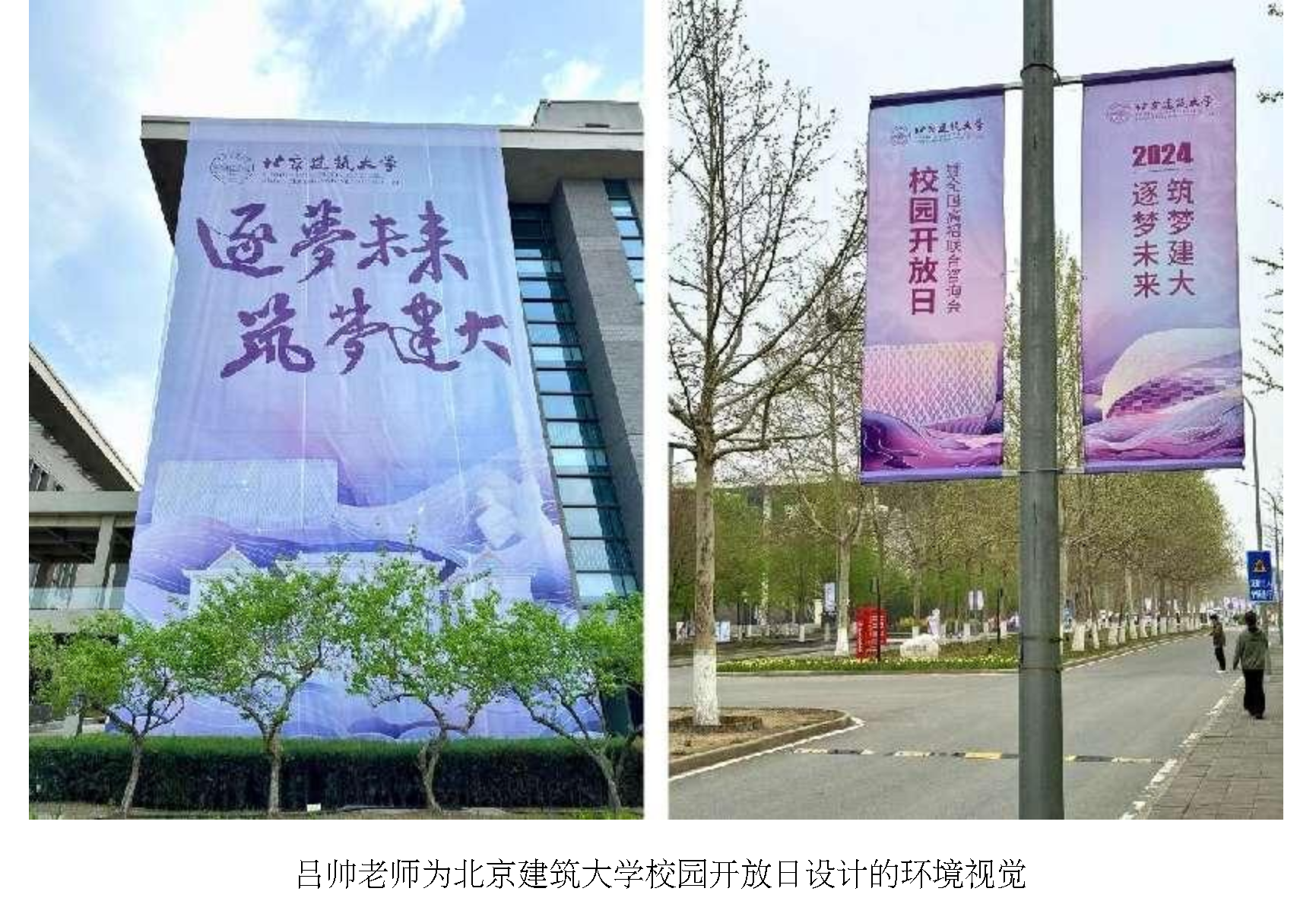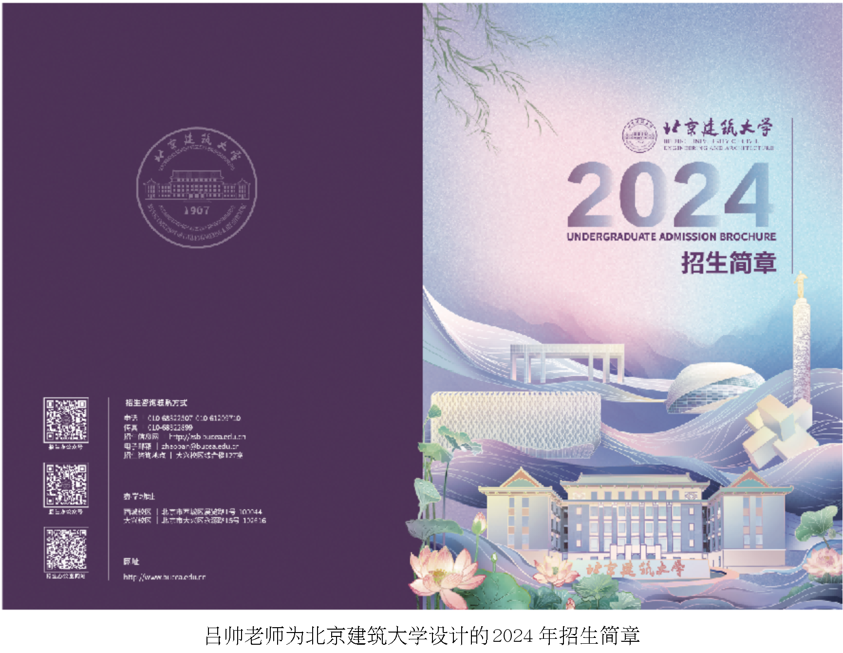 自2023年进入努努影视 努努影视 工作以来,吕帅老师多次积极参与学校、学院的视觉环境设计工作。2024年努努影视 校园开放日暨全国高招联合咨询会引人注目,其主要视觉设计与招生简章设计均由吕帅老师主创。他融合当下深受青少年喜爱的新国风进行视觉系统设计,将努努影视 的标志性校园建筑、景观融入其中,在延续“建大紫”作为主色调的同时,加入幻彩风格的渐变蓝、粉等色彩,增进了校园视觉的活力与亲和力。并且该视觉系统实现了全方位的立体化应用、展示,体现了学校的元素和设计学系交叉多元的专业特色,为活动增色不少。此后,吕帅老师还主创设计了当年度的本科生录取通知书及通知书系列衍生品,在互联网收获了大量好评。