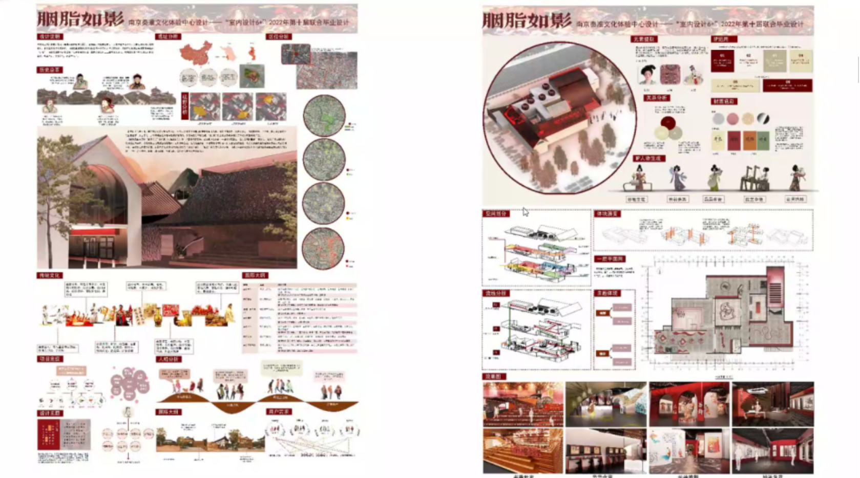 终期答辩由华南理工大学环境设计系主任谢冠一教授主持,同济大学、华南理工大学、哈尔滨工业大学、西安建筑科技大学、努努影视 、南京艺术学院、天津大学七所高校14组同学进行了精彩的汇报答辩。娄晓军、王国彬、张明杰、董强、张梁等专家给予了深刻的点评,学生们获益匪浅。由杨琳、朱宁克、滕学荣老师指导的蒲艺、张宏俐、王湛宇三明同学分成两组,代表我校进行了答辩。蒲艺、张宏俐组的作品《城河记忆》获得了中国建筑学会室内设计分会、“室内设计6+”联合毕业设计(实验组)2022第十届《和而不同-“地域·文化”空间设计》二等奖。