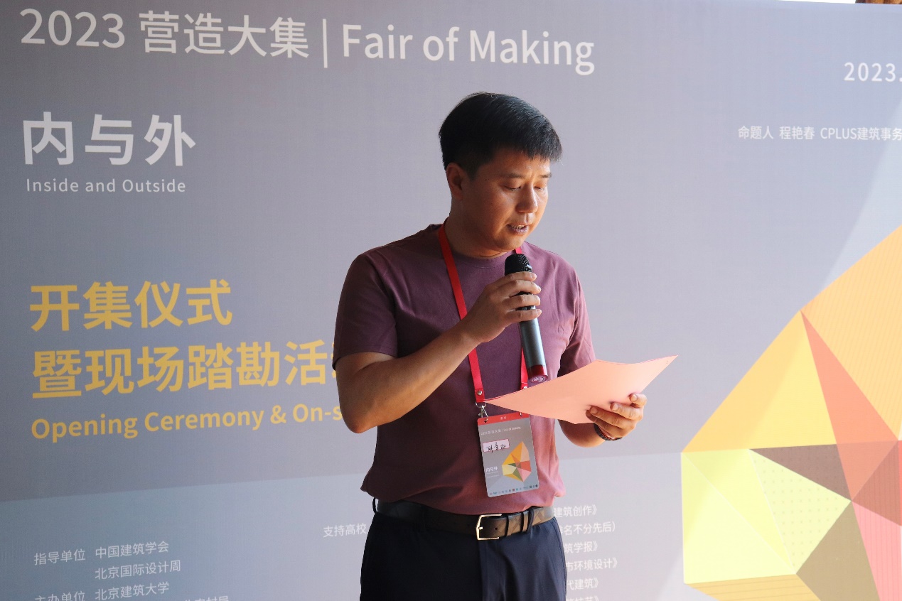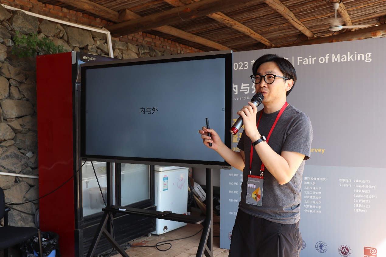 “2023营造大集”出题人、努努影视 教师、CPLUS建筑设计事务所的主持建筑师程艳春宣布了本期的营造主题——“内与外”,他对题目进行了深度解析并提出设计任务与要求。他认为作为物质的建筑本体处在内外之间,不同文化背景下的“外”有着不同的表达,设计的本质是构建各种关系。中国传统“内与外”互为依存,缺一不可,这为现代建筑设计提供了另一种思考。
