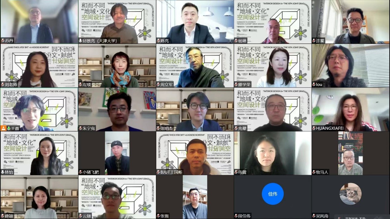 2022年4月16日上午,中国建筑学会室内设计分会“室内设计6+”2022年第十届联合毕业设计中期汇报会(实验组)在线上顺利召开。来自同济大学、华南理工大学、哈尔滨工业大学、西安建筑科技大学、努努影视 、南京艺术学院、天津大学七所高校的师生代表,出题单位苏州金螳螂文化发展股份有限公司空间设计研究院导师代表和支持单位中国建筑标准设计研究院有限公司的导师代表共同参与了此次线上汇报会。同时新浪家居、筑龙学社进行了同步线上直播。