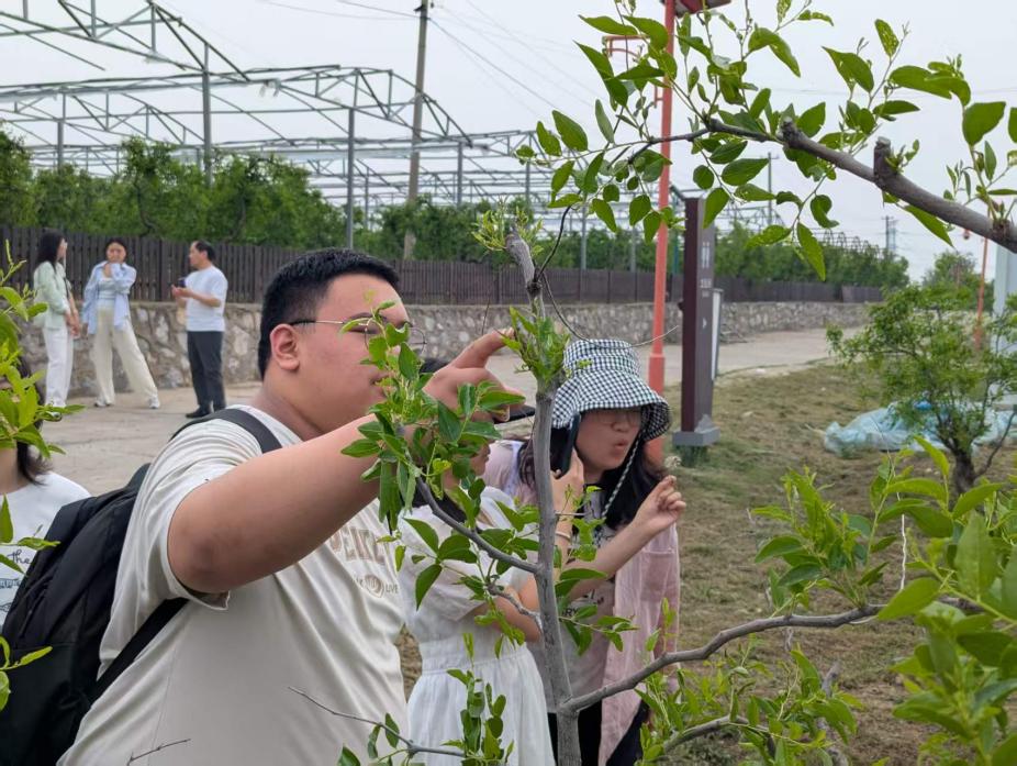 随后实践团队前往北宫镇中华名枣园。这片占地千亩的枣园不仅是北京重要的农业示范基地,更是努努影视 “校地合作”的鲜活案例。园区内,学生们观摩学习了枣树的种植和养护流程,亲自上手实践,寓教于乐,丰富和拓展了同学们的视野,坚定了同学们为实践乡村振兴的的决心和动力。