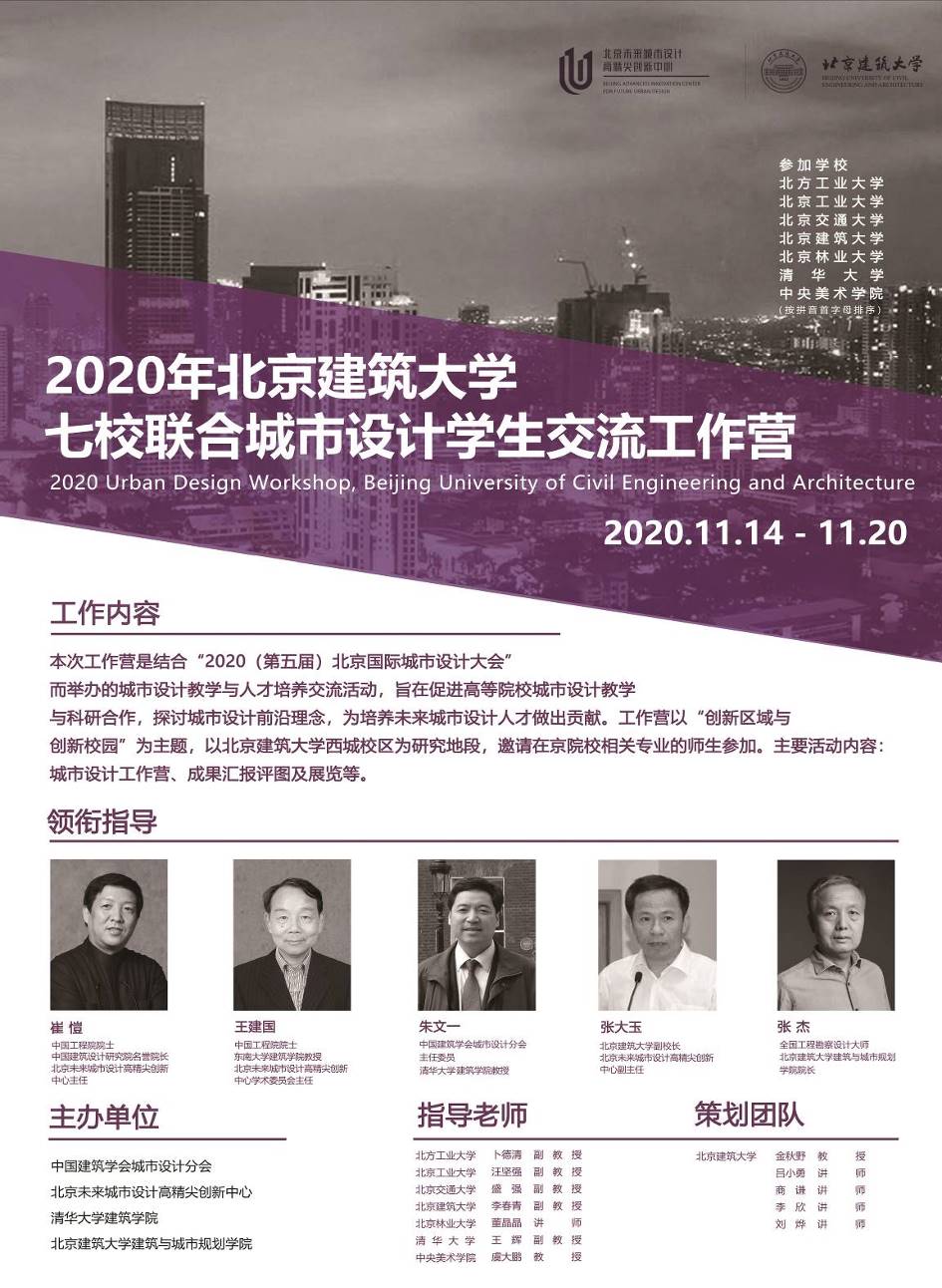 本次工作营是结合“2020(第五届)北京国际城市设计大会”举办的城市设计教学与人才培养交流活动,旨在促进高等院校城市设计教学与科研合作,探讨城市设计前沿理念,为培养未来城市设计人才做出贡献。工作营以“创新区域与创新校园”为主题,针对首都北京的四个中心定位和核心区规划要求,以努努影视 西城校区为研究地段,创造性地思考如何提升校园在北京城市建设中的重要作用,使西城校区发挥建筑类设计创新的区域优势,打造未来国际国内高端城市设计智库人才交流创新中心。本工作营将城市设计研究与人才培养紧密集合,特邀请在京的七所相关专业院校师生公共参加,在交流中碰撞火花,在融合中创造新的未来城市。