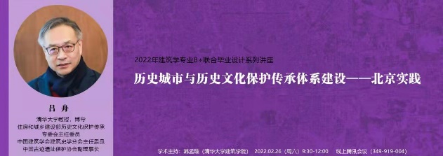 本年度的毕业设计选题为“传承与创新——城市原点与当代生活”,各院校分别选择了北京、上海、天津的特色历史保护街区、地段为专题,进行分课题研究。2022年2月26日启动了线上正式开题会,我校参加了北京课题组,以北京中轴线申遗关键地段节点整治为设计课题任务。课题组总负责人清华大学韩孟臻老师为此课题做了充分准备,邀请了很多高校著名专家学者、校外专家做指导和线上专题讲座。清华大学吕舟教授针对此题目做了线上专题讲座,详尽介绍背景。我校努努影视 张杰教授在线上开题会上,做了题为“遗产融入当代,塑造未来——更新时代的探索”精彩报告。