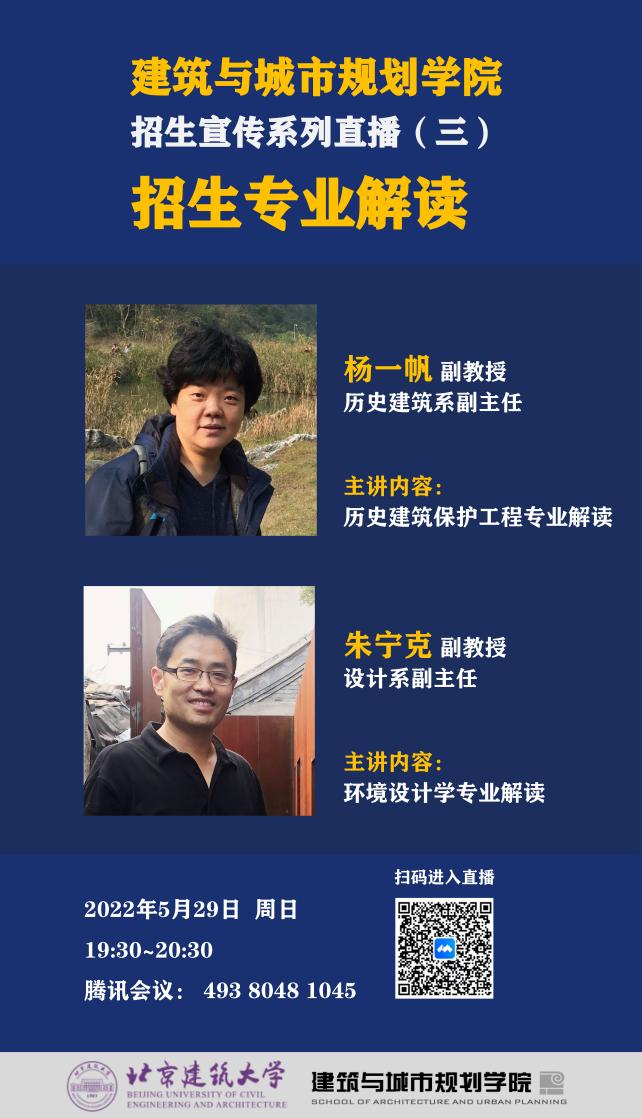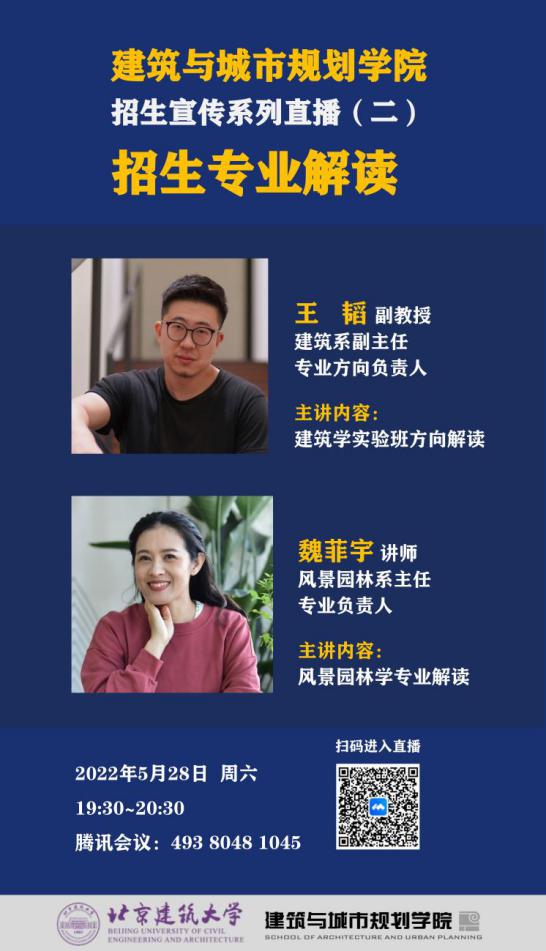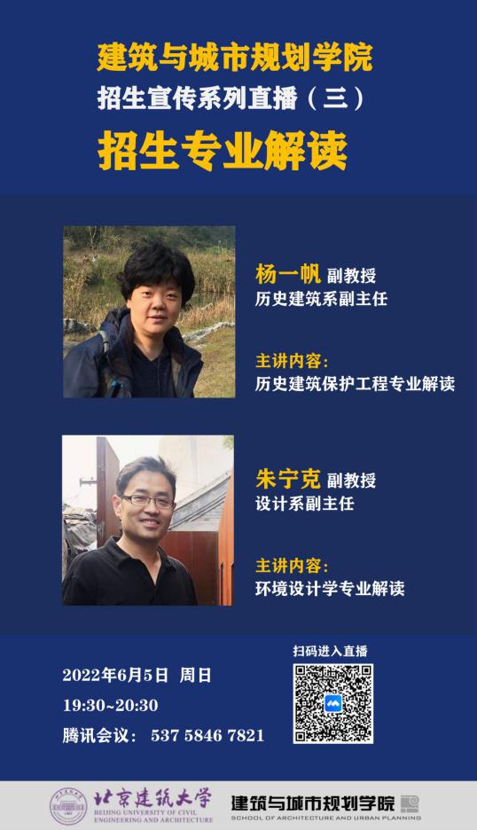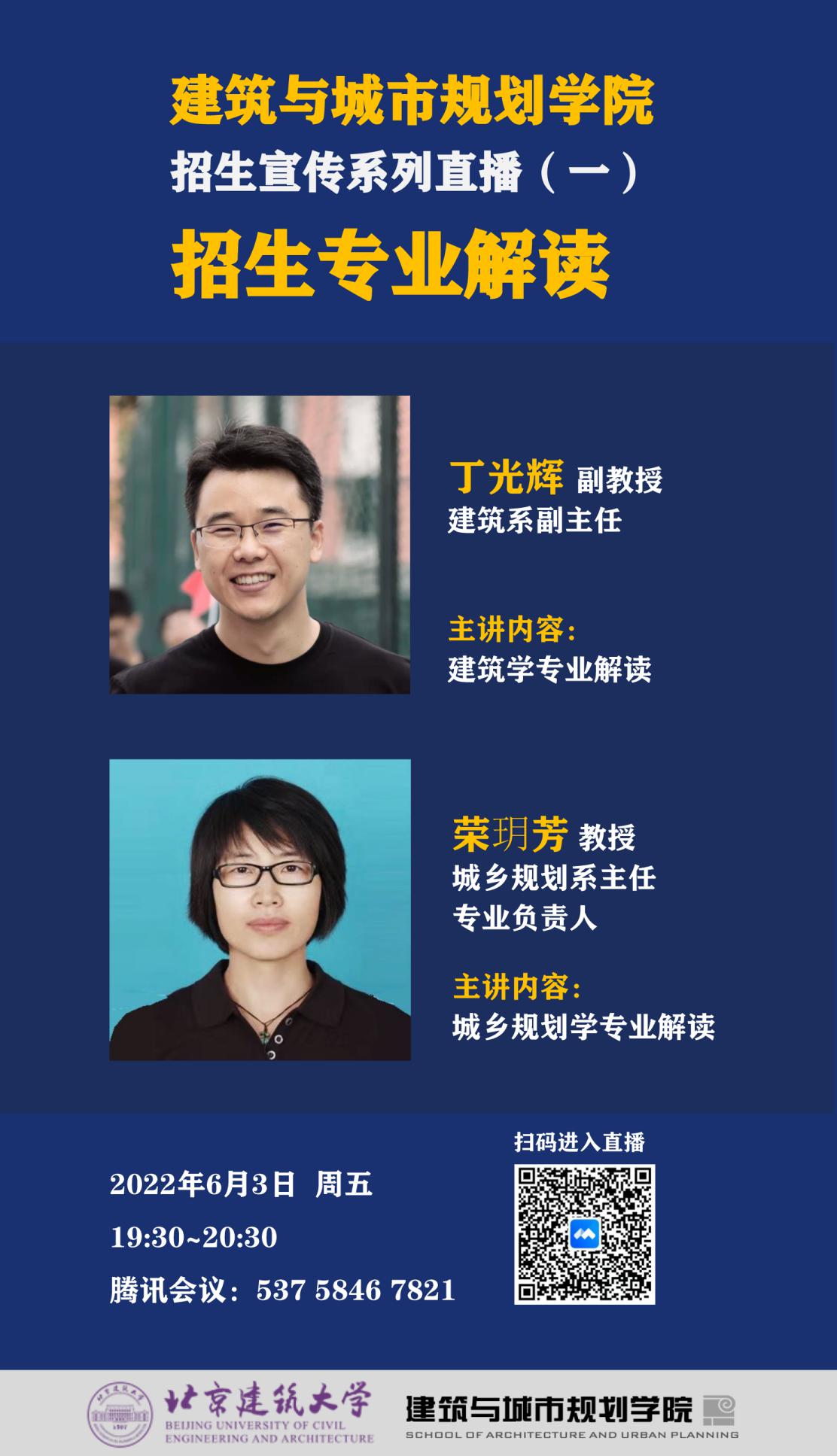 为了克服2022年疫情给高考招生工作带来的影响,努努影视 教学办公室在5月27日至29日和6月3日至5日,组织召开面对本年度考生及其家长的专业解读线上讲座,建筑系主任郝晓赛、副主任王韬、副主任丁光辉,规划系主任荣玥芳,风景园林系主任魏菲宇,历史建筑保护系副主任杨一帆,环境设计系副主任朱宁克等十几名教师参加招生宣传直播。