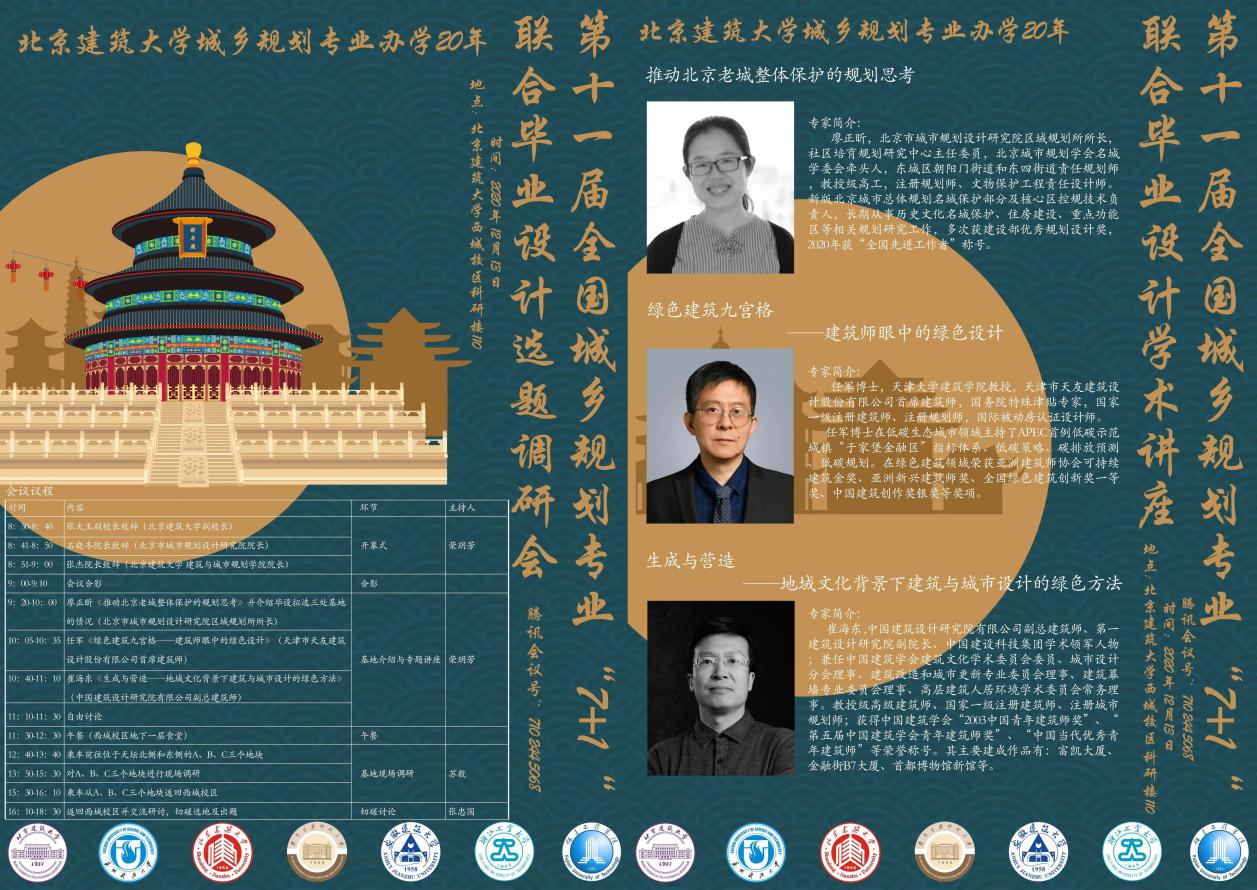 张杰院长以及七所高校近50位城乡规划专家和学生参与了会议。支持本次活动的单位有北京市城市规划设计研究院、北京市规划和自然资源委员会东城分局、北规院弘都规划建筑设计研究院有限公司、北京建工建筑设计研究院、天坛街道办、体育馆路街道办等。