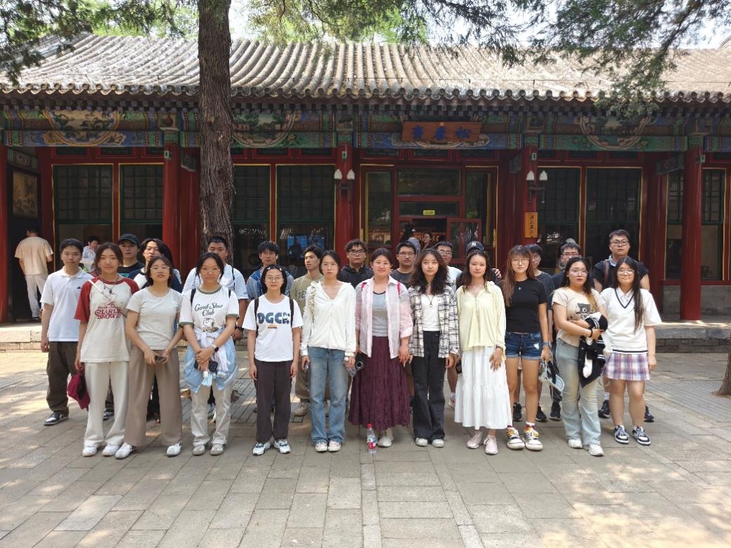 全体师生乘坐大巴从学校出发前往首站颐和园益寿堂。这座见证1949年中国共产党人“进京赶考”的重要历史建筑,成为检验学生理论学习成果的实践考场。在分组讲解环节中,25名学生以“和平解放北平的历史抉择”为主题,通过建筑布局、文物展陈、影像资料三个维度展开系统阐释。游园参观阶段,学生们结合课程要求与自身专业所学,对颐和园建筑群的多方面信息要素进行政治文化解码。