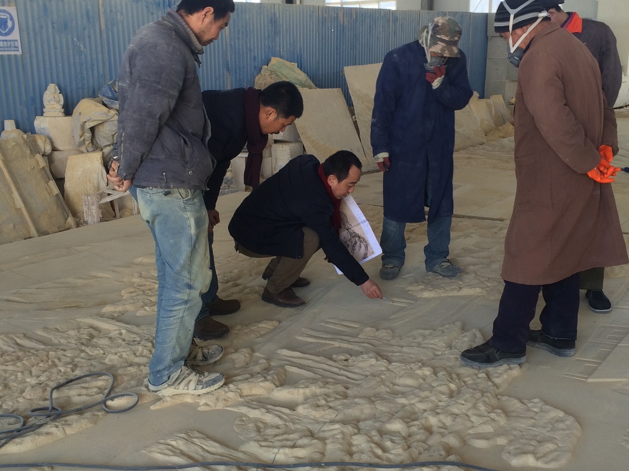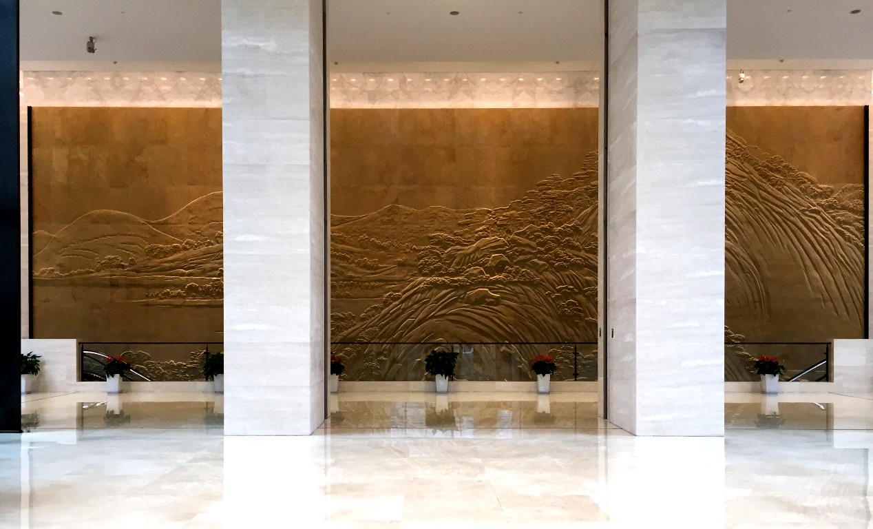教师李学兵雕塑作品《富春山居图》获得优秀奖。本次获奖作品为大型砂岩浮雕,面积约为320平米,于2016年8月安装竣工于中国建筑总公司首层大堂。作品以元代画家黄公望《富春山居图》中的《剩山图》为蓝本,通过泥塑制模,数据扫描,3D粗模雕刻,人工精雕,最终完成作品。我国传统绘画,借助墨色的浓淡干湿,以及笔法的皴擦点染体现山水浩渺意境,是以虚写实;雕塑则是利用起位叠压、体面转折、虚实处理去追寻原作精神,可谓以实写虚。该作品是以现代材料加工手段对传统经典绘画的“转译”,也是以浮雕表现山水意境的有益尝试。
