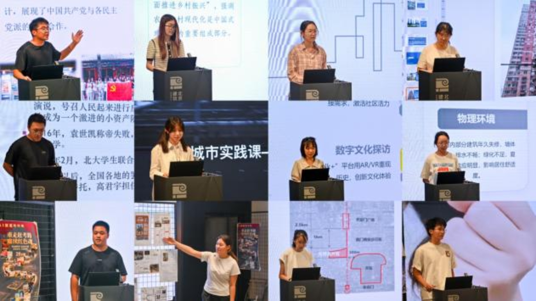 十支实践团队依次进行实践成果汇报,各团队围绕不同主题开展实践探索,从不同维度深入诠释“人民城市”理念,以多元视角呈现丰富多样的实践成果。他们通过建筑学子的眼睛、双手和思考,呈现出一场关于城市温度、文化传承与未来想象的青春答卷。
