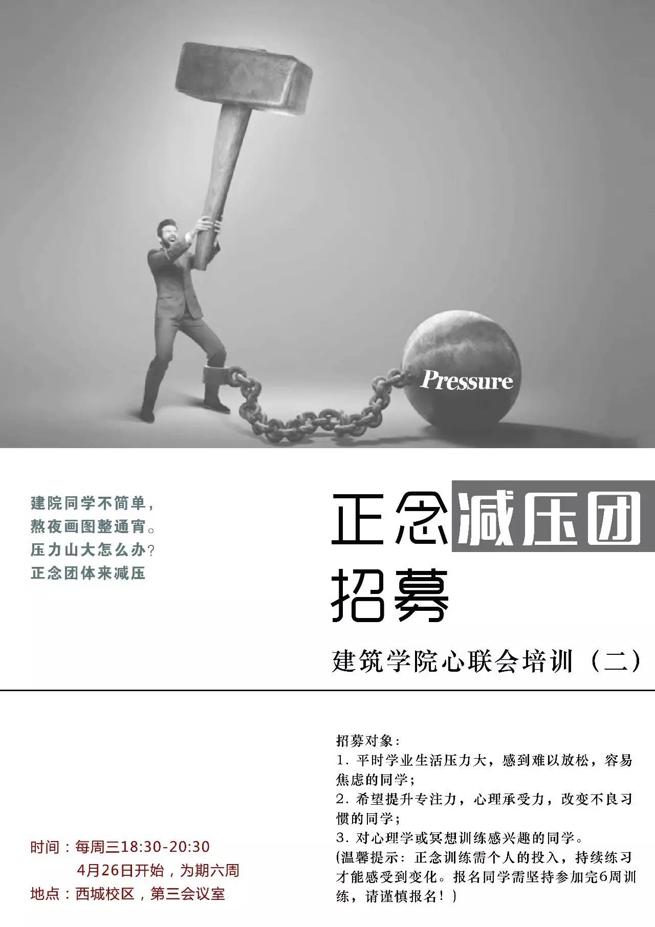 每周三晚6:30-8:30,4月26日晚第一次,为期六周